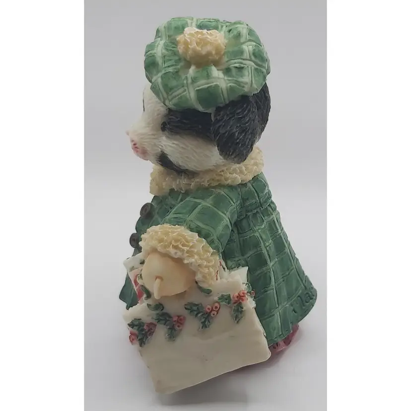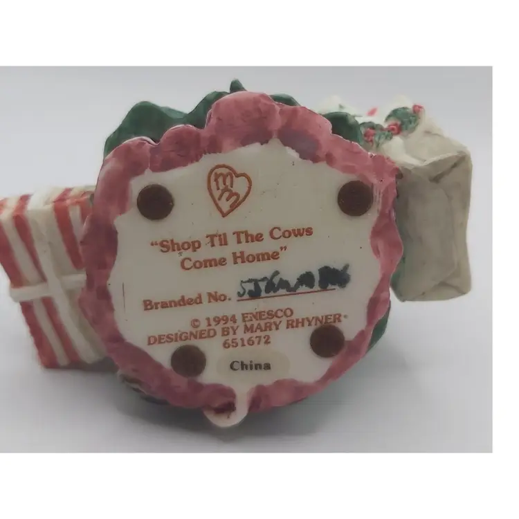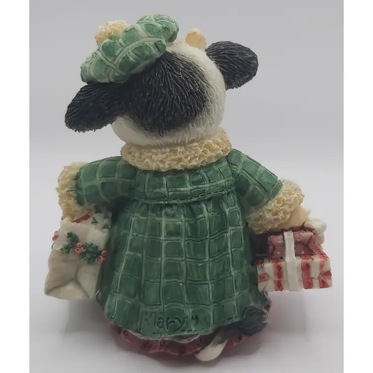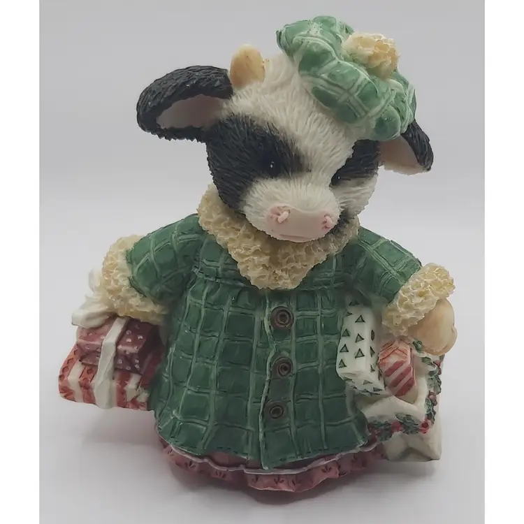 Adorable cow shopping and carrying gifts. 1994 Enesco Mary Moo Moos with no chips or cracks. 3 inches tall.