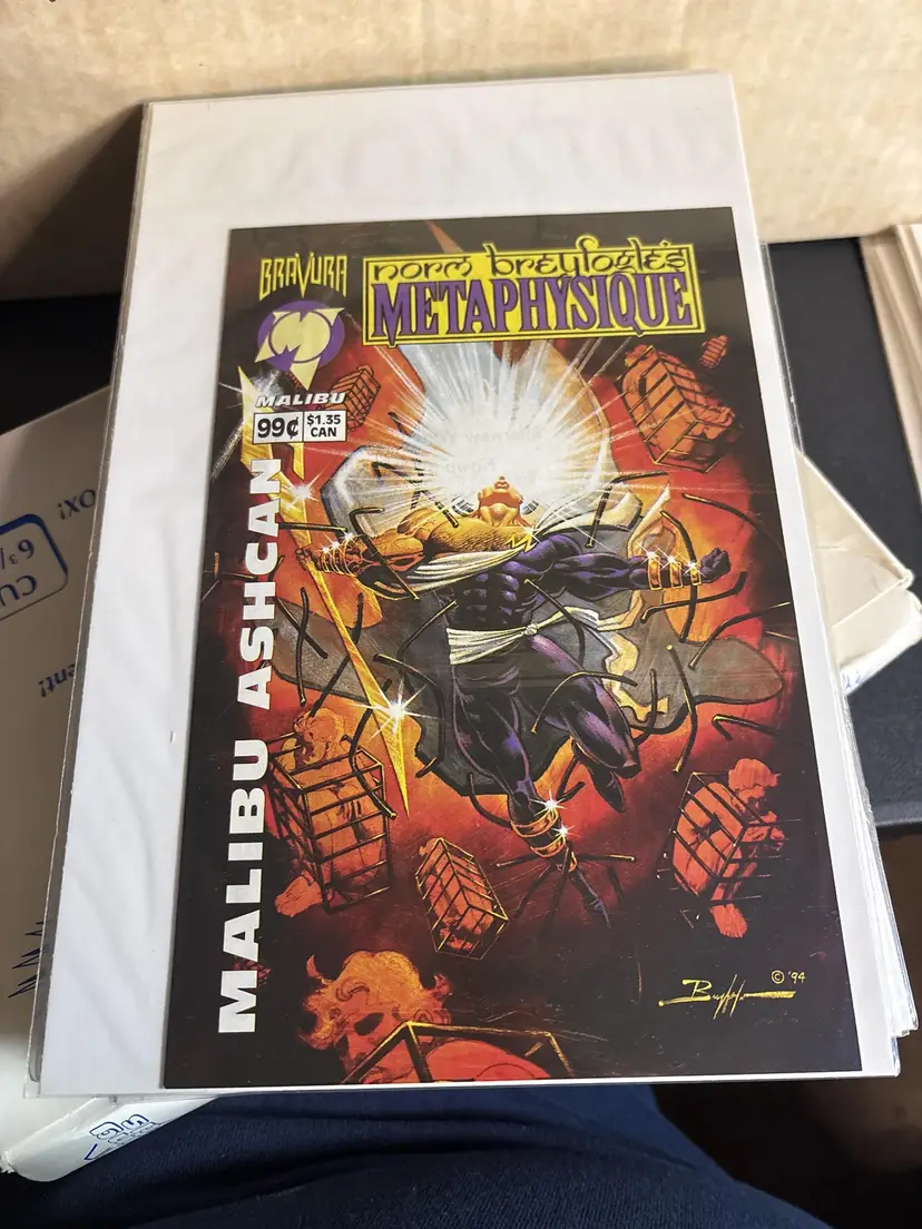 Rare 1994 Metaphysique #1 Ashcan Edition from Malibu Comics / Bravura, featuring stunning cover art by legendary Batman artist Norm Breyfogle. This ashcan was part of a promotional series released at just 99¢ and was printed in limited quantities, making it a must-have for 1990s indie comic collectors and fans of Breyfogle's signature style.
