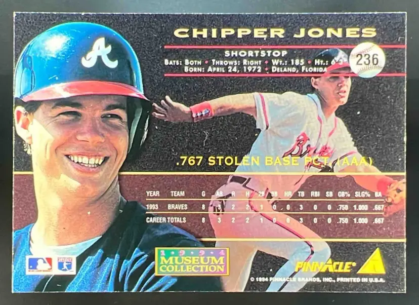 1994 Pinnacle Baseball Chipper Jones Museum Collection #236 Atlanta Braves