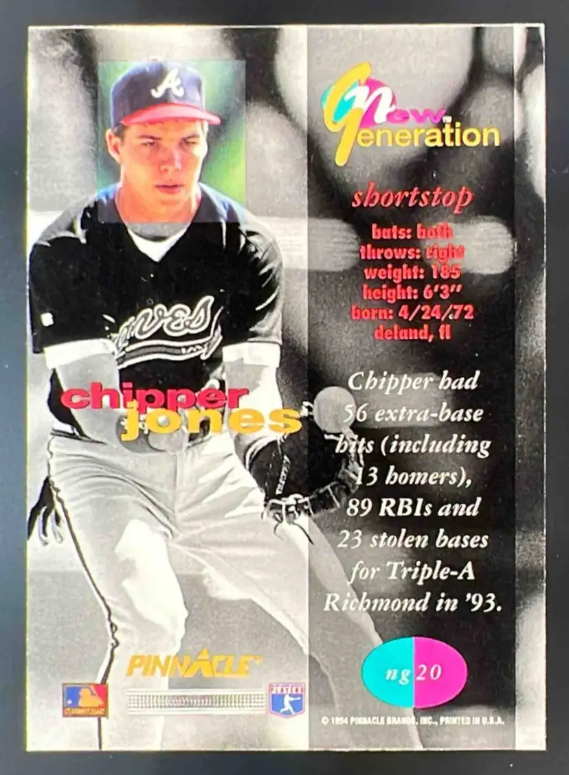 1994 Pinnacle New Generation Chipper Jones #NG20 Atlanta Braves