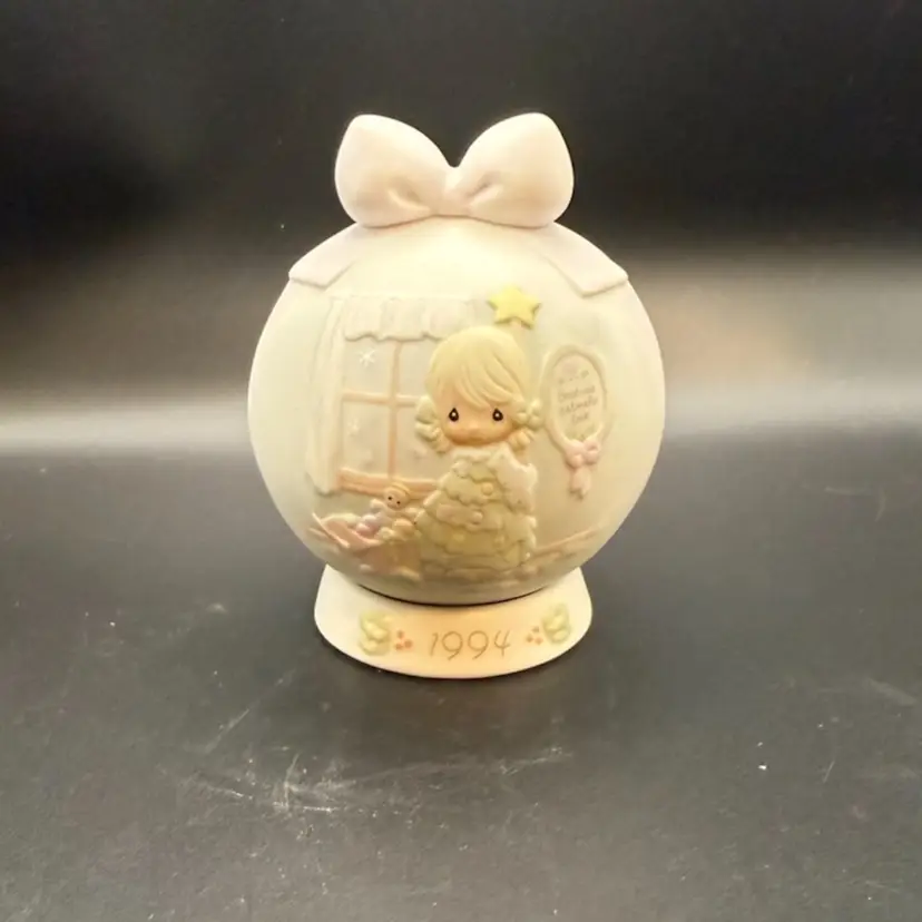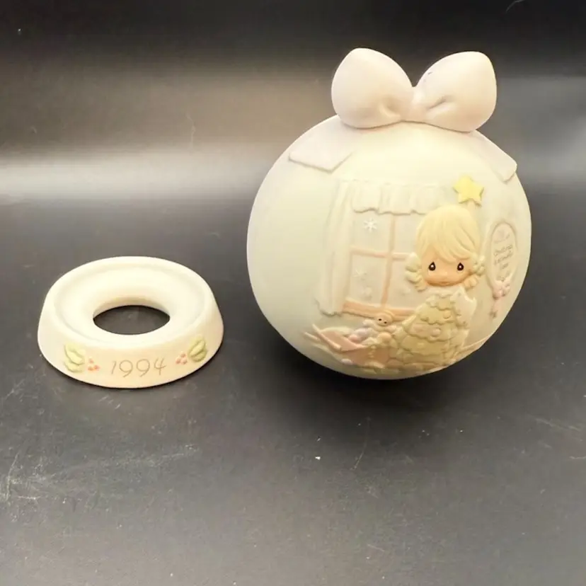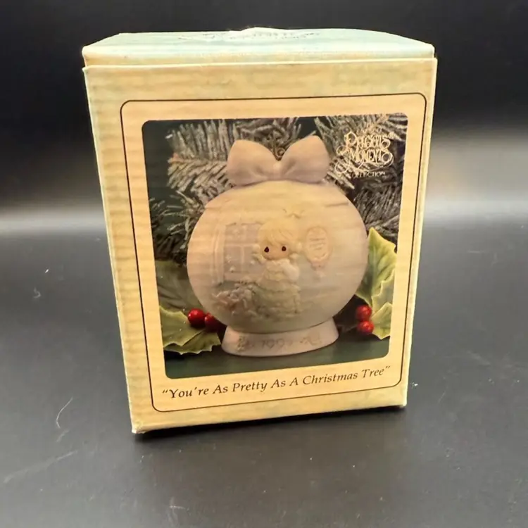 This Ornament comes with the original box. This is You're As Pretty As A Christmas Tree Item #530387. This is released in 1994 and retired in 1994 and has a Horn Mark on the Bottom.