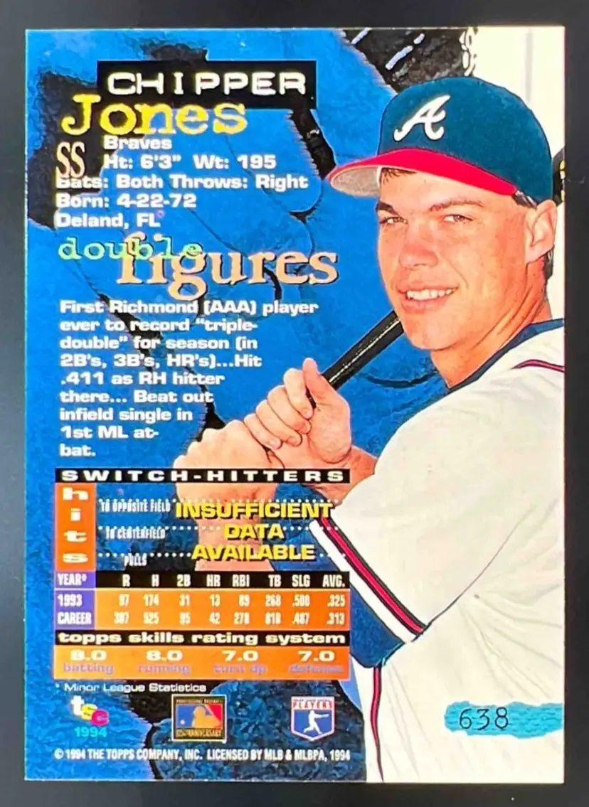 1994 Topps Stadium Club Chipper Jones Golden Rainbow #638 RC Braves