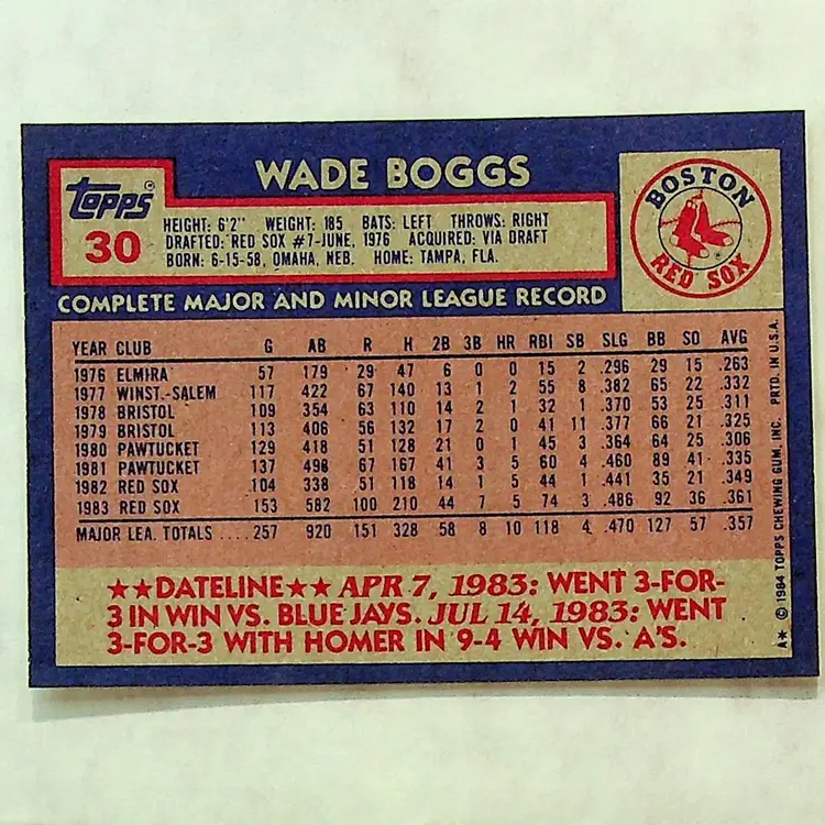 1994 Topps Wade Boggs #30 Baseball Card from Vending Case