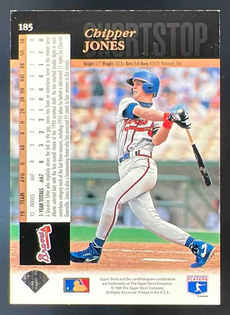 1994 Upper Deck Baseball Chipper Jones Electric Diamond #185 RC Atlanta Braves