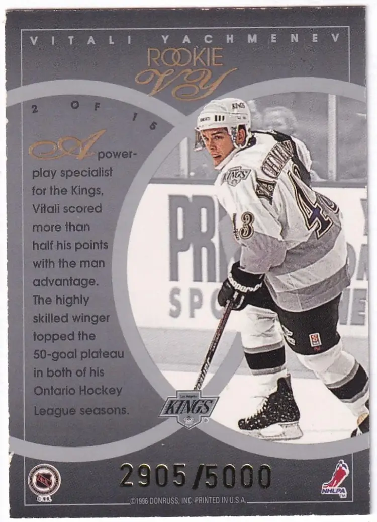 1995-96 Donruss Elite Rookies #2 Vitali Yachmenev Los Angeles Kings Print Run - 5000