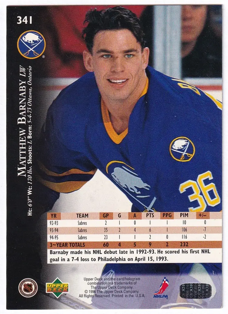 1995-96 Upper Deck Electric Ice #341 Matthew Barnaby Buffalo Sabres
