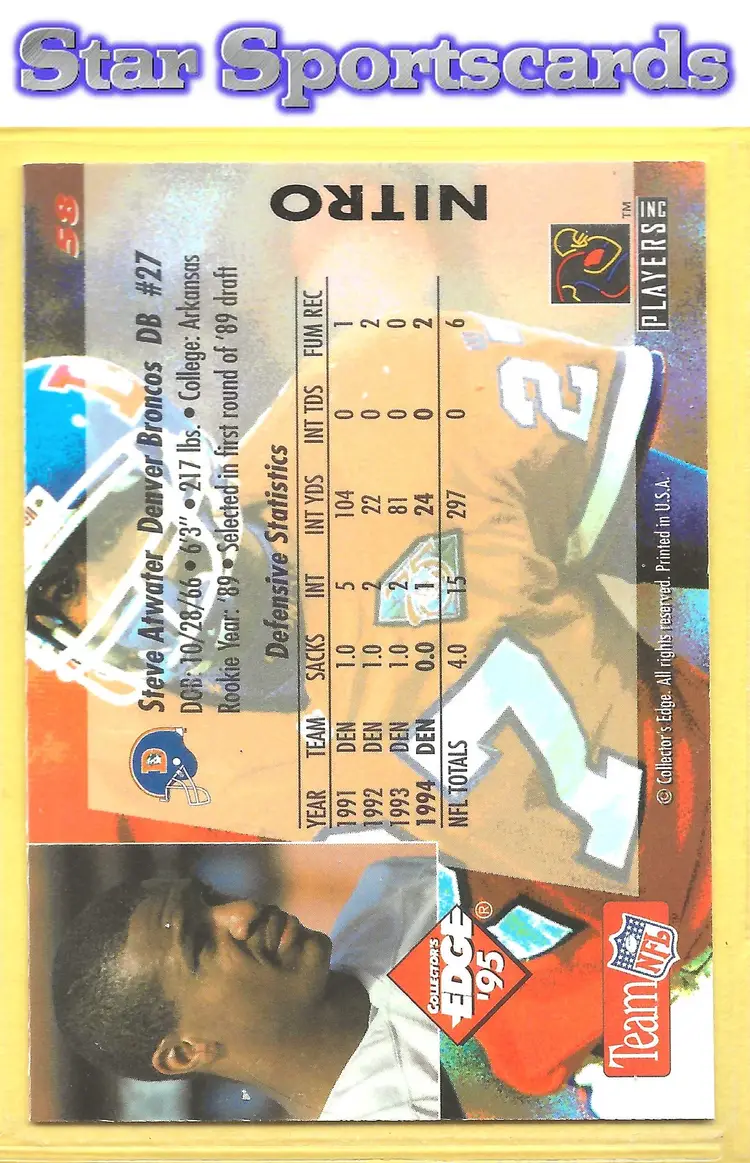 This is a nice example of a 1995 Collector's Edge #58 Steve Atwater Nitro 22K .Other important information about this card: In Steve Atwater played for the Denver Broncos.Please check out our other listings for more great cards.