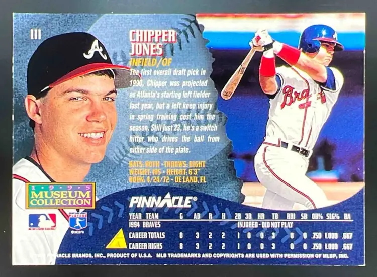 1995 Pinnacle Baseball Chipper Jones Museum Collection #111 Atlanta Braves
