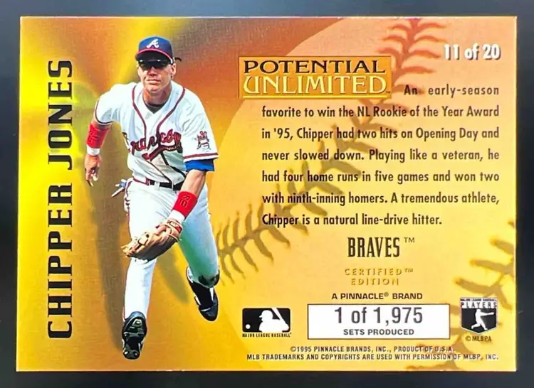 1995 Pinnacle Select Certified Chipper Jones Potential Unlimited PR1975 #11 Braves