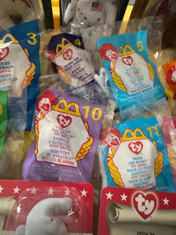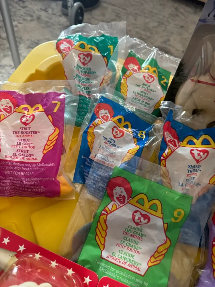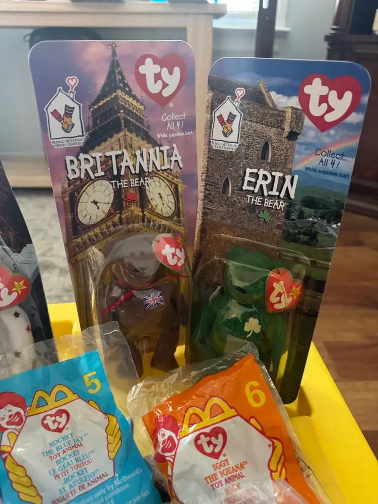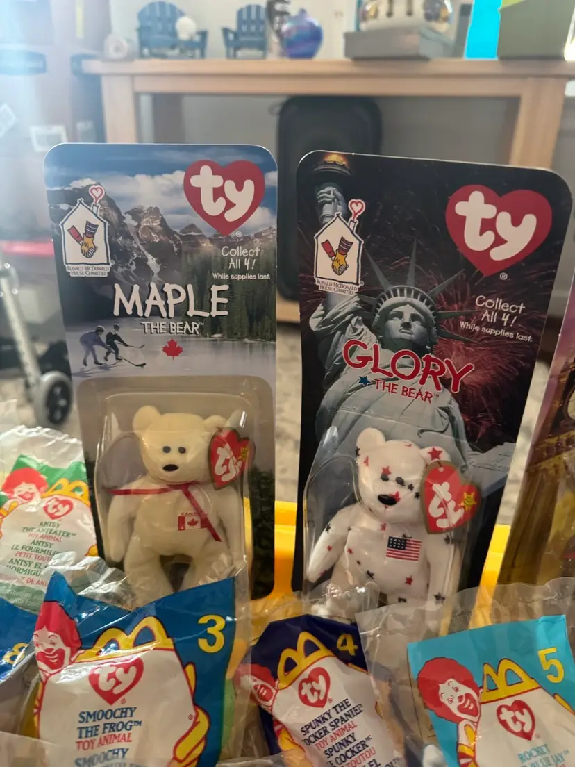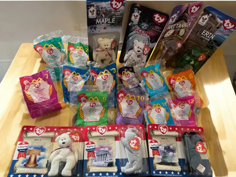 1996 1999 McDonald’s Ty Beanie Babies Complete Collection 1-12 & Libearty Righty & lefty , also Maple, Erin, Britannia & Glory, all are in excellent new condition.