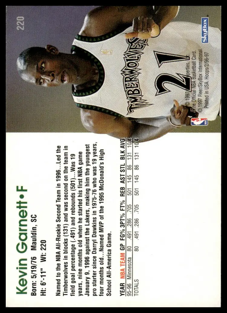 1996-97 Hoops #220 Kevin Garnett Minnesota Timberwolves