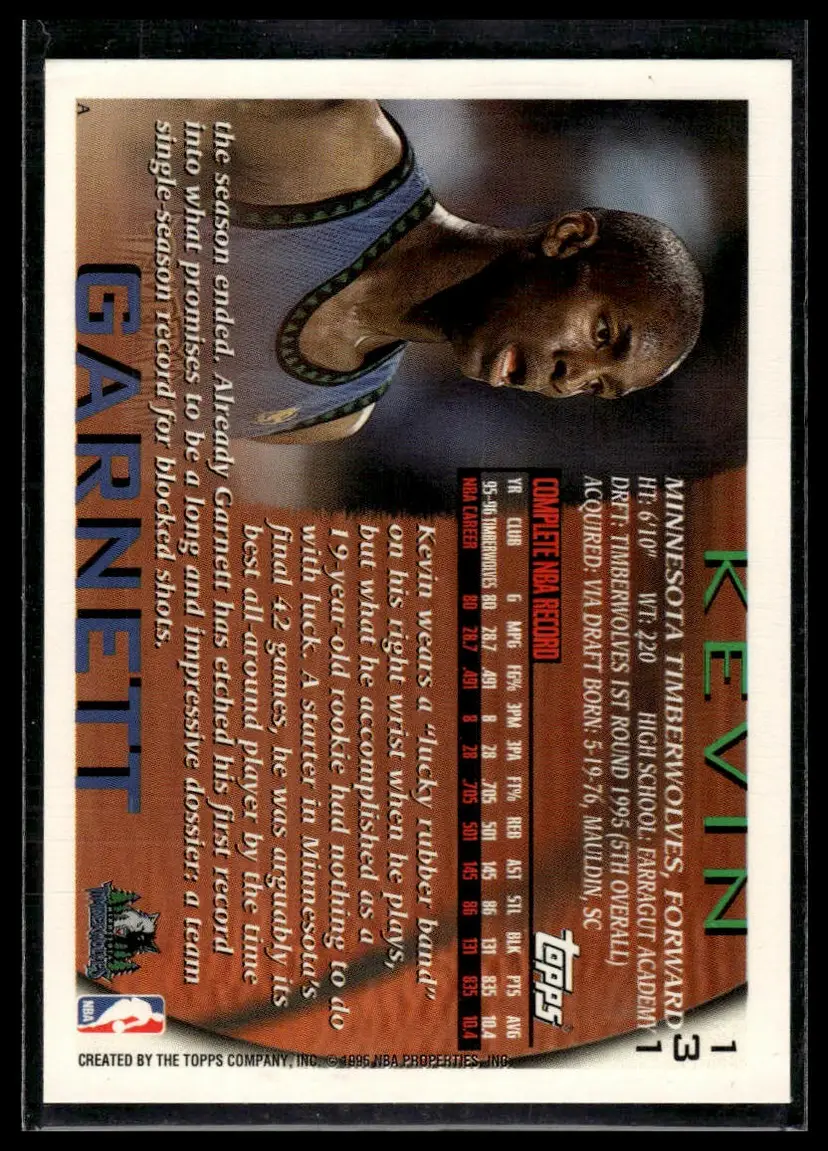 1996-97 Topps #131 Kevin Garnett Minnesota Timberwolves -1