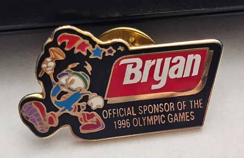 The 1996 Atlanta Games Bryan Official Sponsor of the Olympic Games Pin is a collectible item that represents the sponsorship of the Olympic Games by Bryan. This pin showcases the theme of the Olympics and was made in China. It serves as a memento of the historic event, making it a valuable addition to any Olympic memorabilia collection.