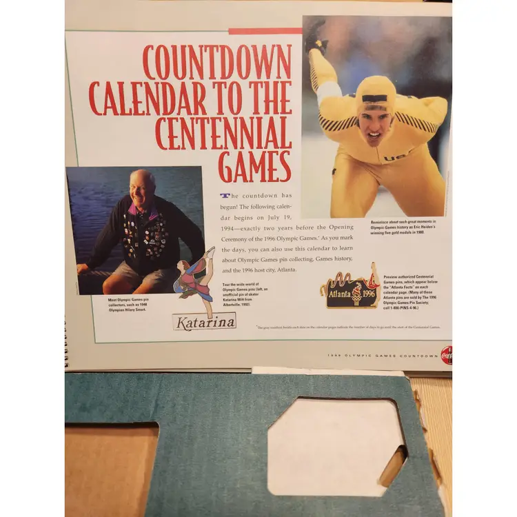 1996 Olympics - Centennial (1896 - 1996) Games in Atlanta Georgia 72 Pins plus Olympic Countdown book Pins include: