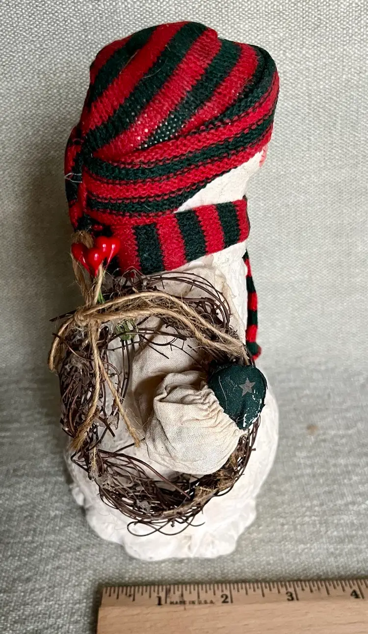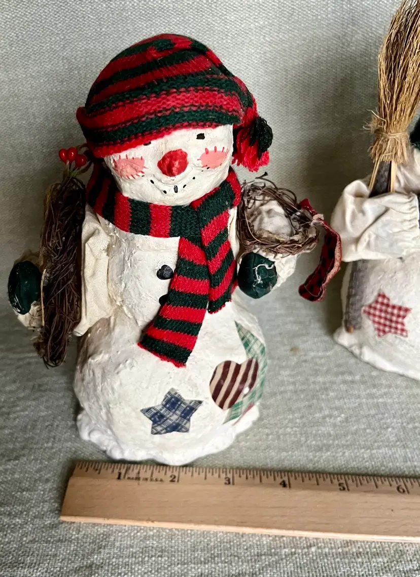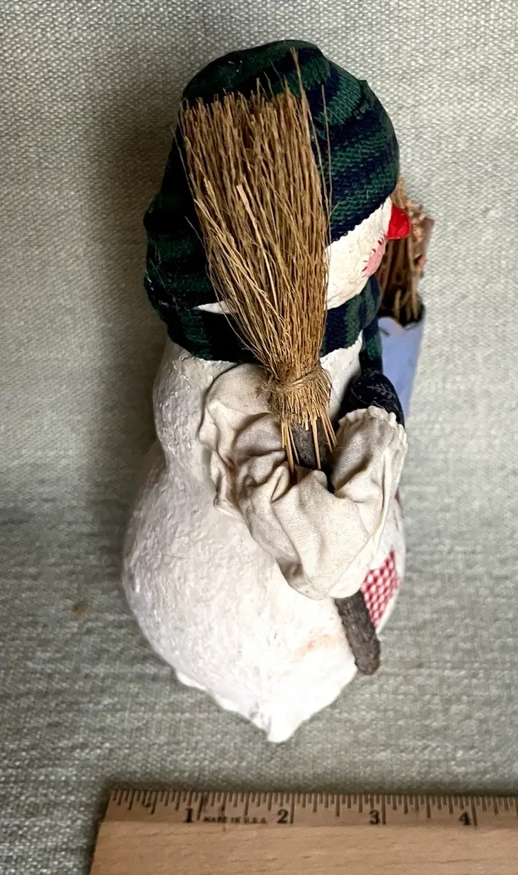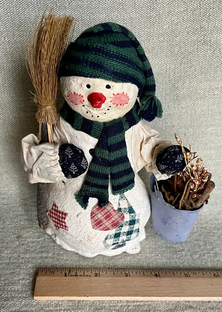 1996 Paper Mache Snowman Crazy Mountain Imports 3D Scarf Hat Broom Pail Quilt