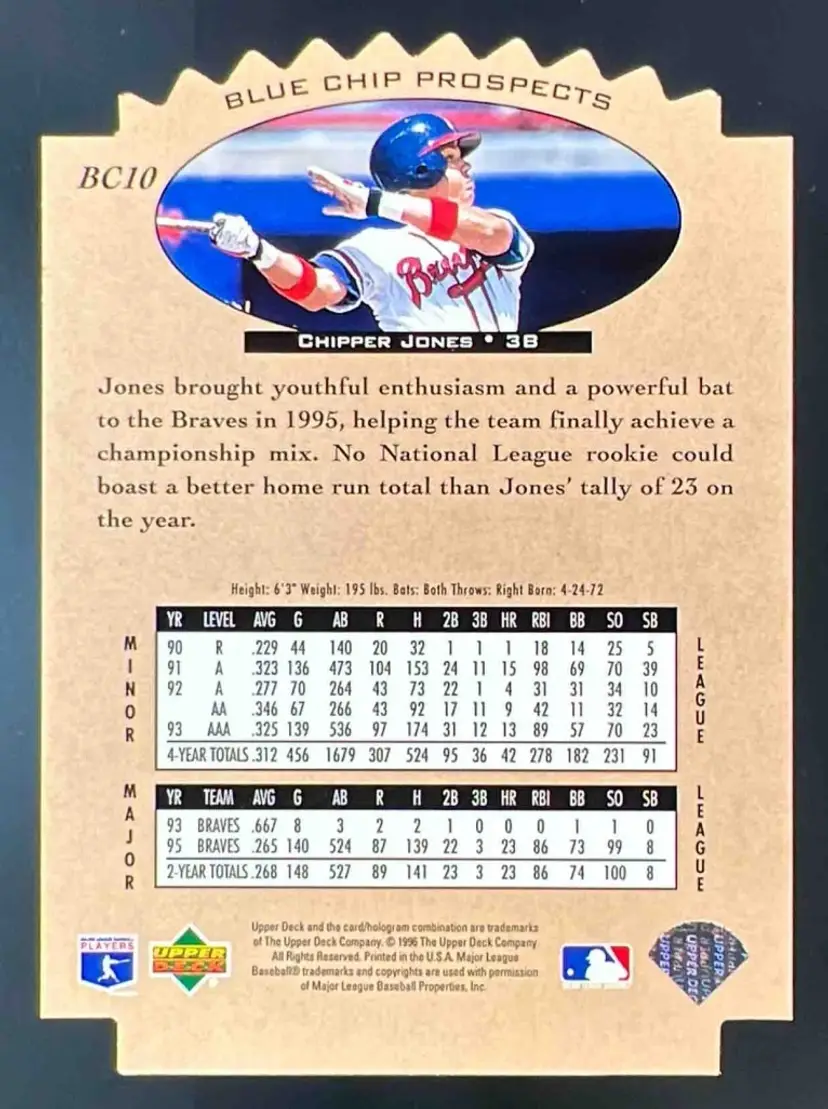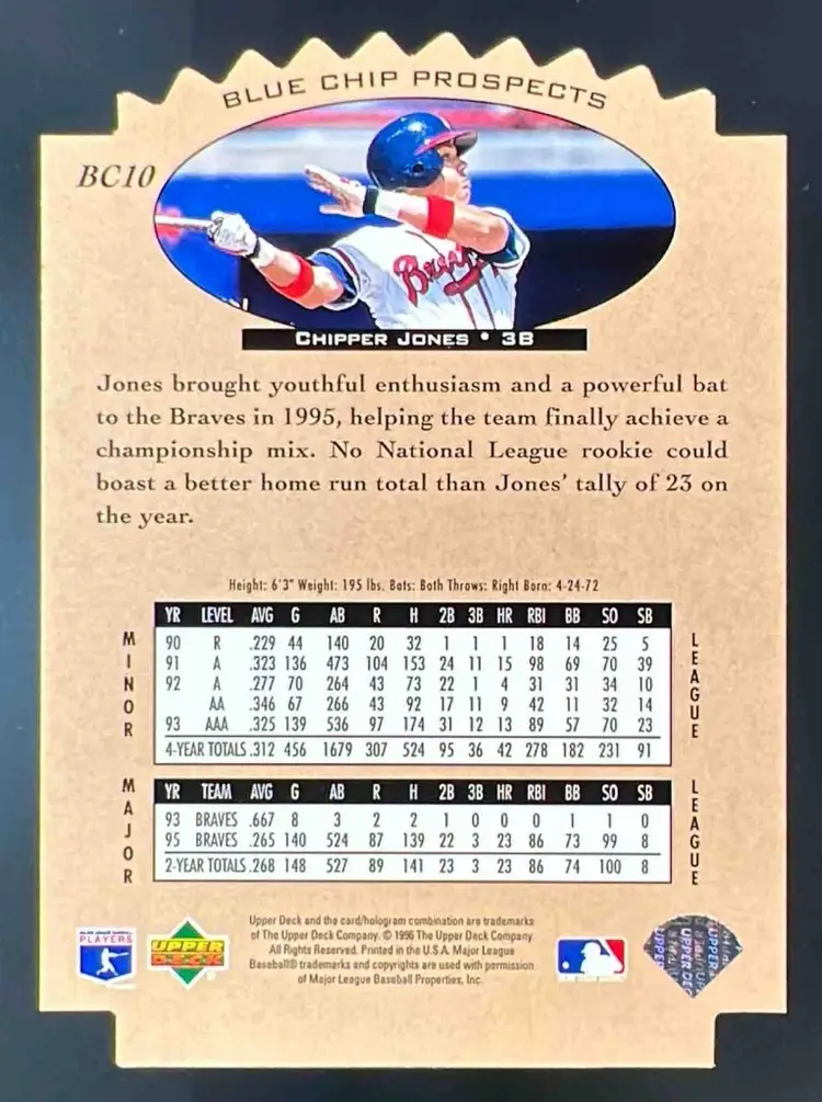 1996 Upper Deck Baseball Chipper Jones Blue Chip Prospects #BC10 Atlanta Braves