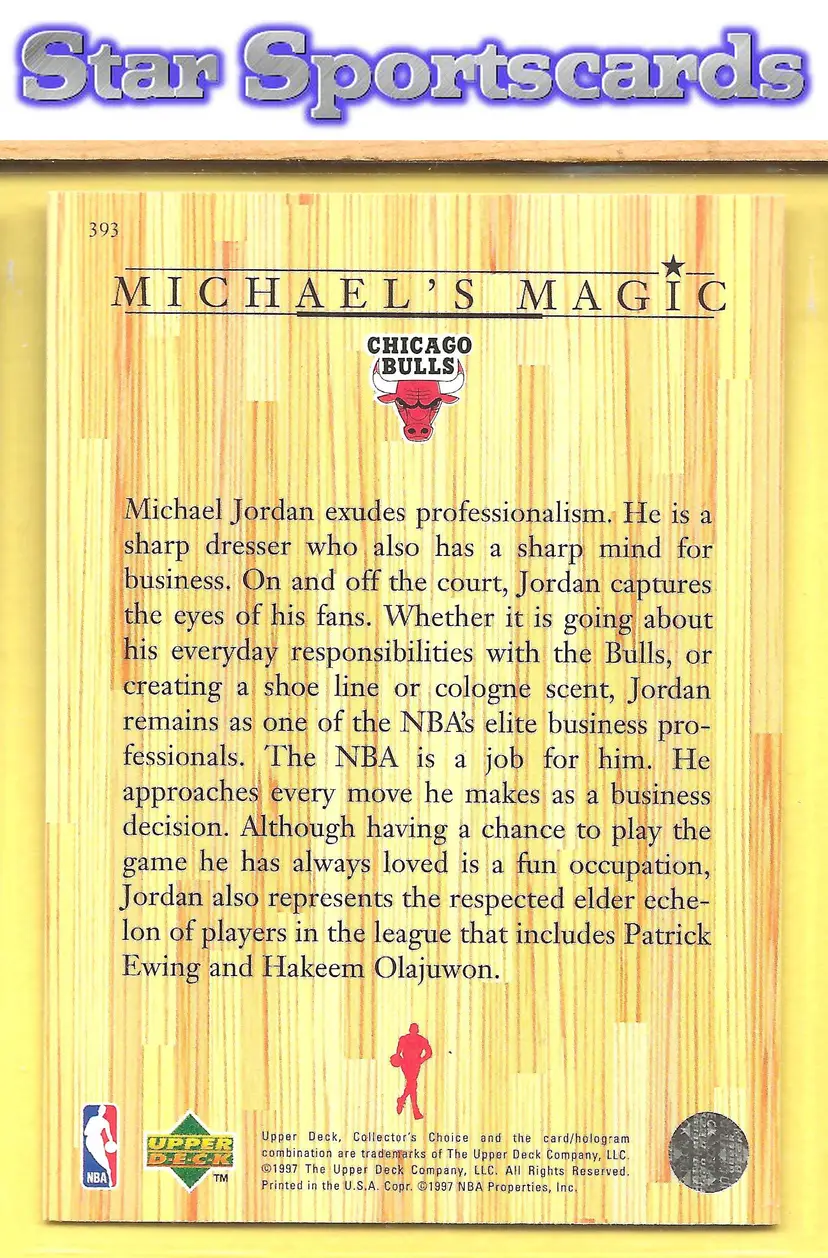 This is a nice example of a 1997-98 Collector's Choice #393 Michael Jordan .Other important information about this card: In Michael Jordan played for the Chicago Bulls.Please check out our other listings for more great cards.
