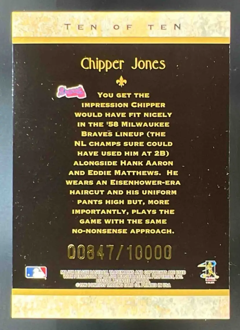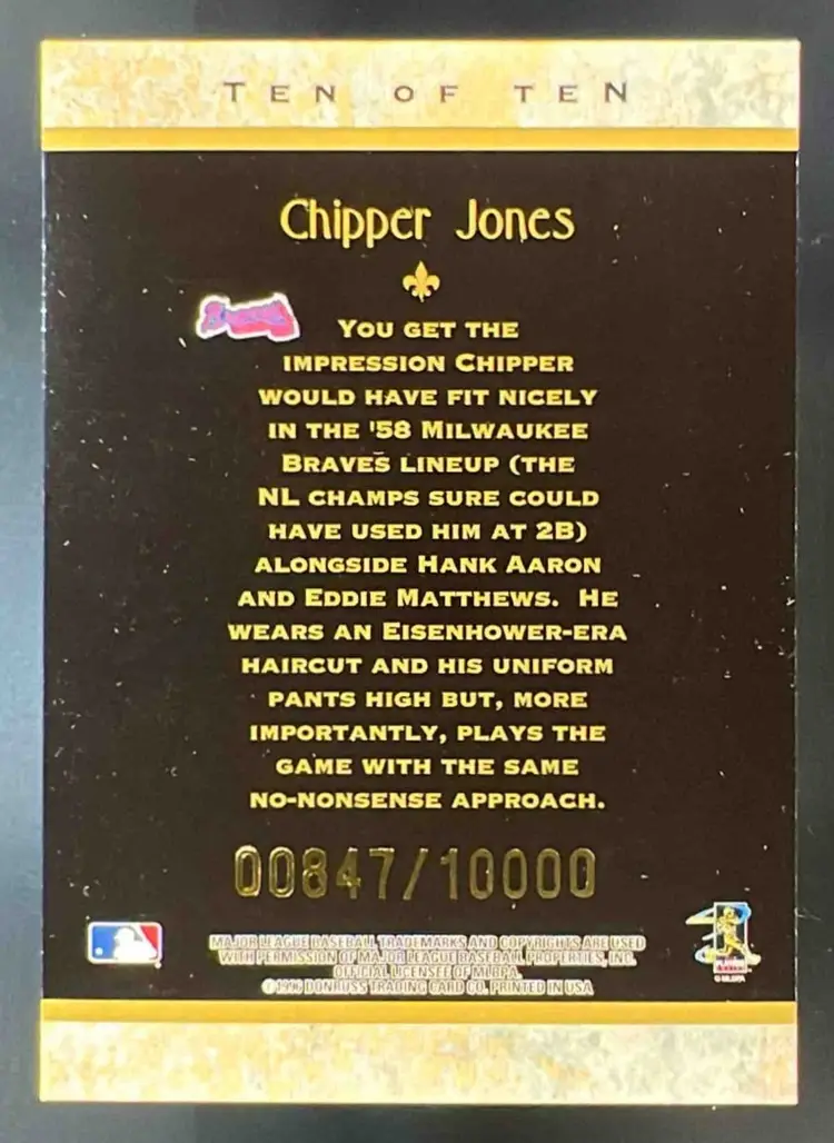 1997 Donruss Baseball Chipper Jones Diamond Kings /10000 #10 Atlanta Braves