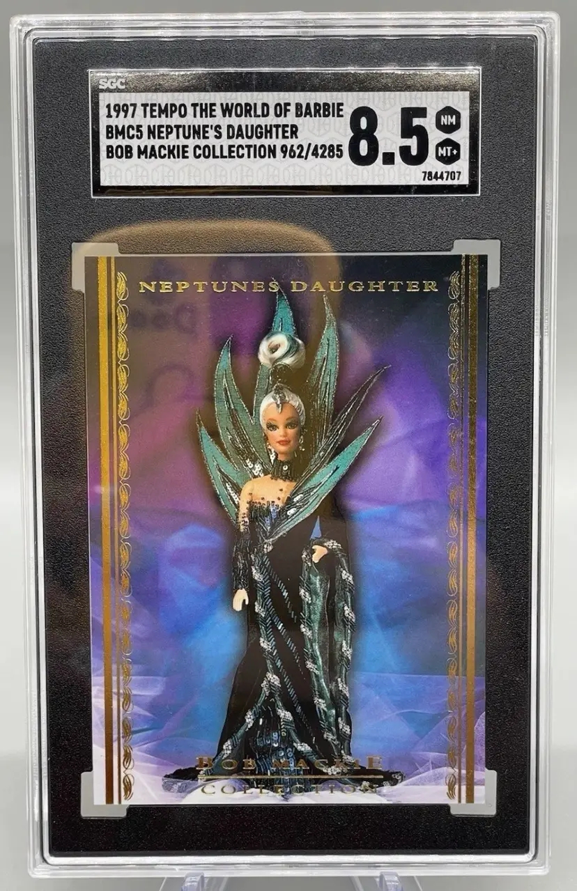 💫 Details: • 1997 Tempo The World of Barbie • Bob Mackie Collection – Neptune’s Daughter • SGC 8.5 NM+ • Card #BMC5 – Serial 962/4285