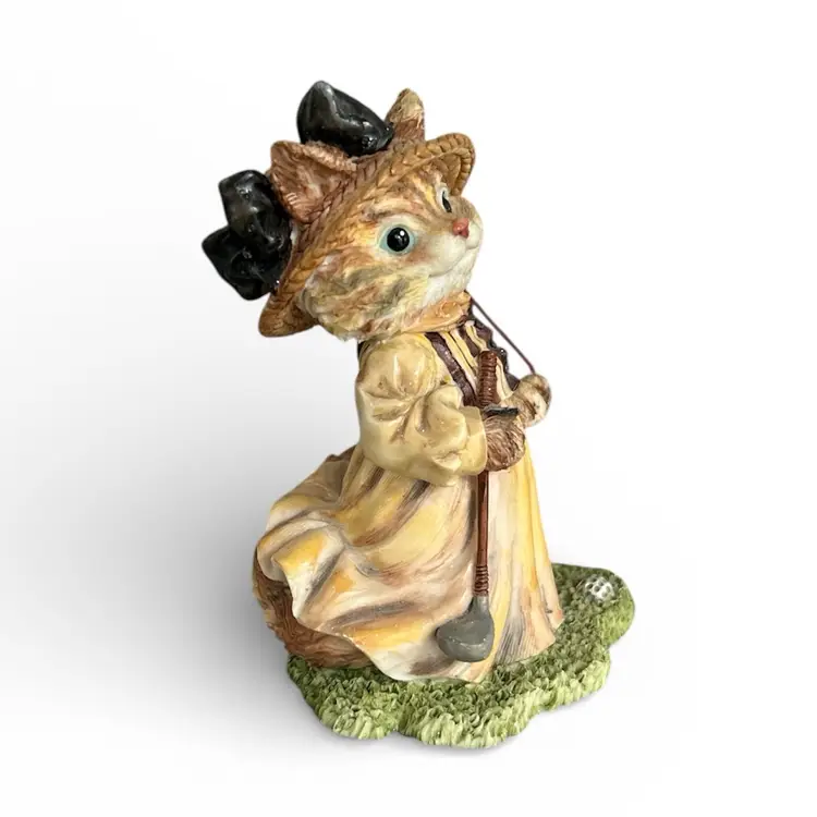 Add a whimsical touch to your collection with this charming cat golfer figurine. Dressed in vintage attire, it's perfect for cat lovers and golf enthusiasts alike. Size: 5”
