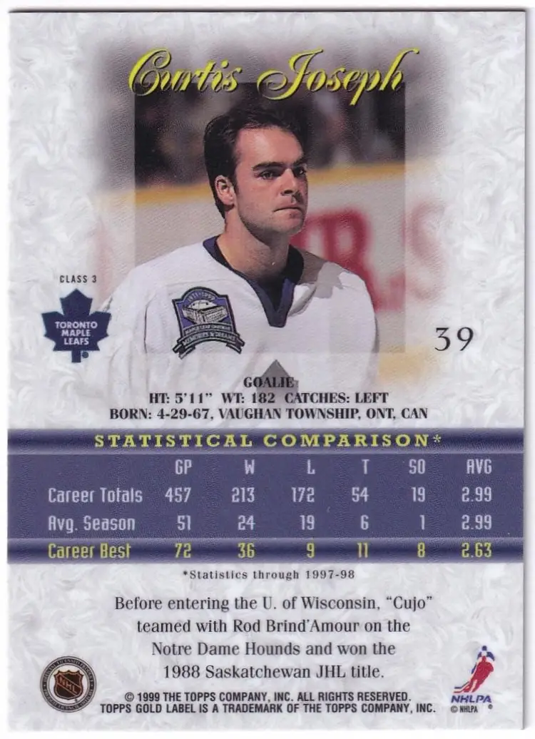 1998-99 Topps Gold Label Class 3 #39 Curtis Joseph Toronto Maple Leafs