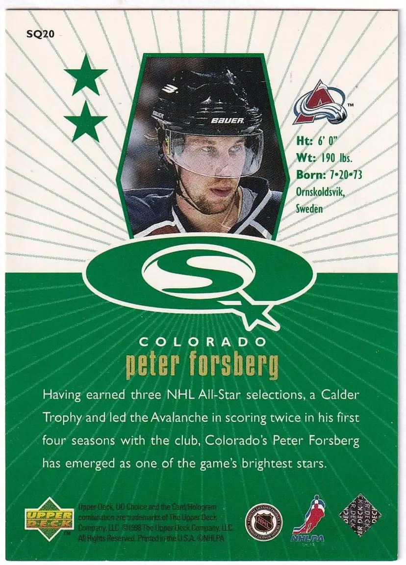 1998-99 UD Choice StarQuest Green #SQ20 Peter Forsberg Colorado Avalanche