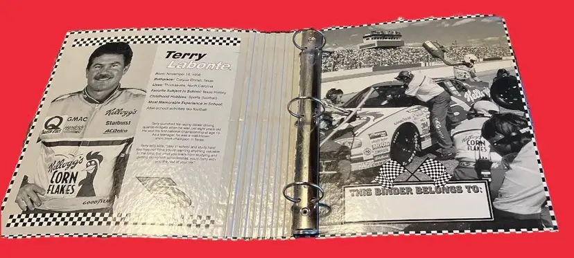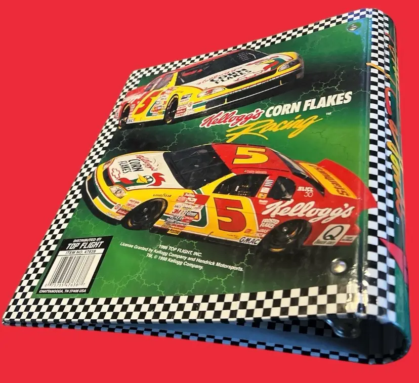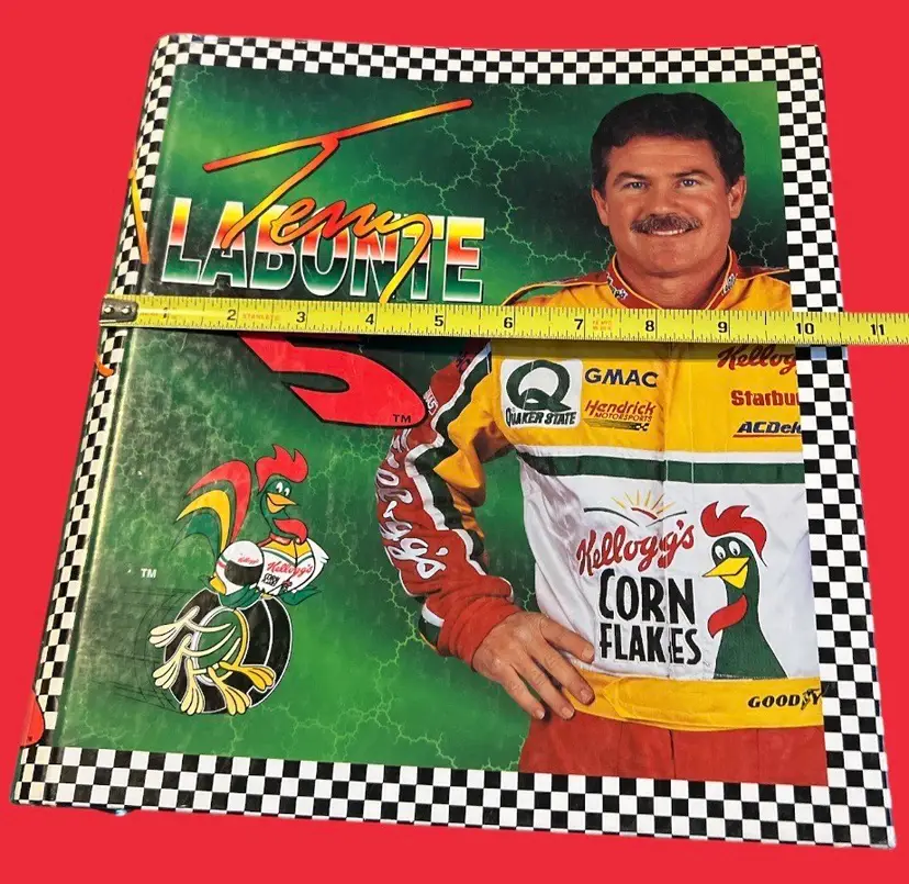 The binder is made in the United States and features the iconic Kellogg's Corn Flakes logo. It is sized as L. The item is perfect for children and adults who want to show their love for Terry Labonte and Hendrick Motorsports. Get your hands on this unique NASCAR collectible today!