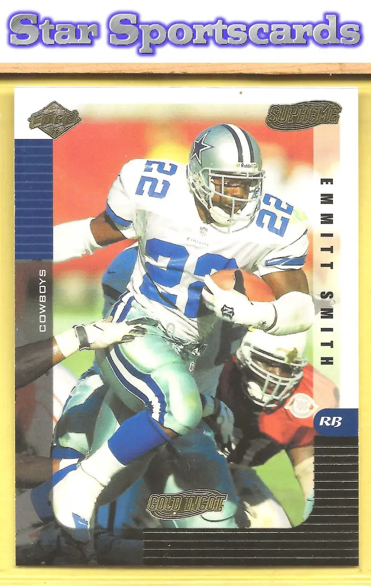 This is a nice example of a 1999 Collector's Edge Supreme #034 Emmitt Smith Gold Ingot .Other important information about this card: In Emmitt Smith played for the Dallas Cowboys.Please check out our other listings for more great cards.