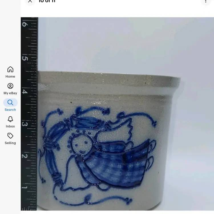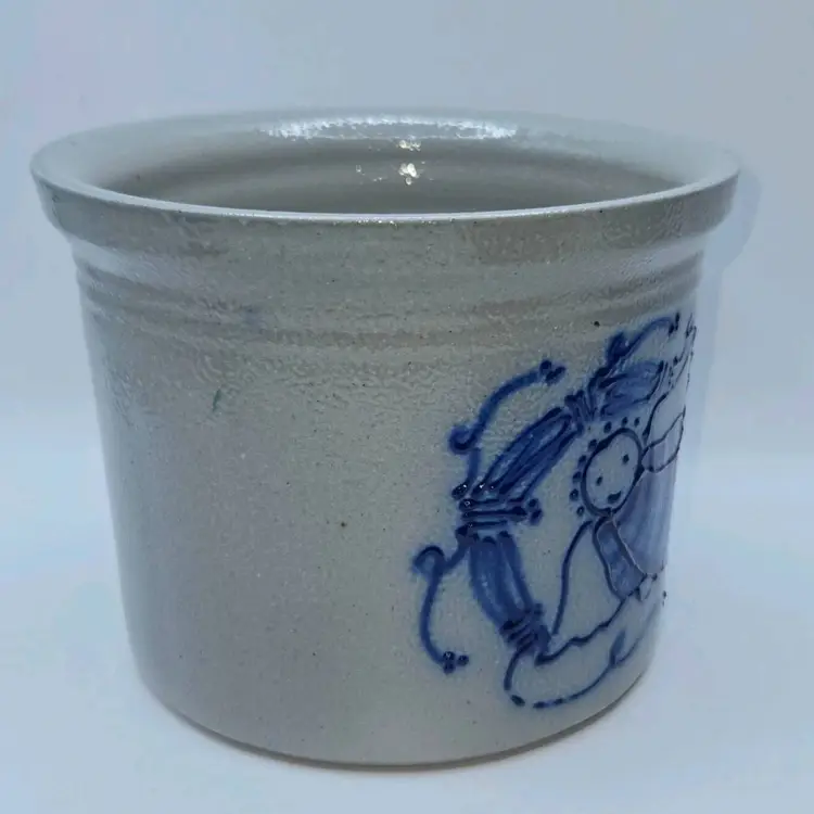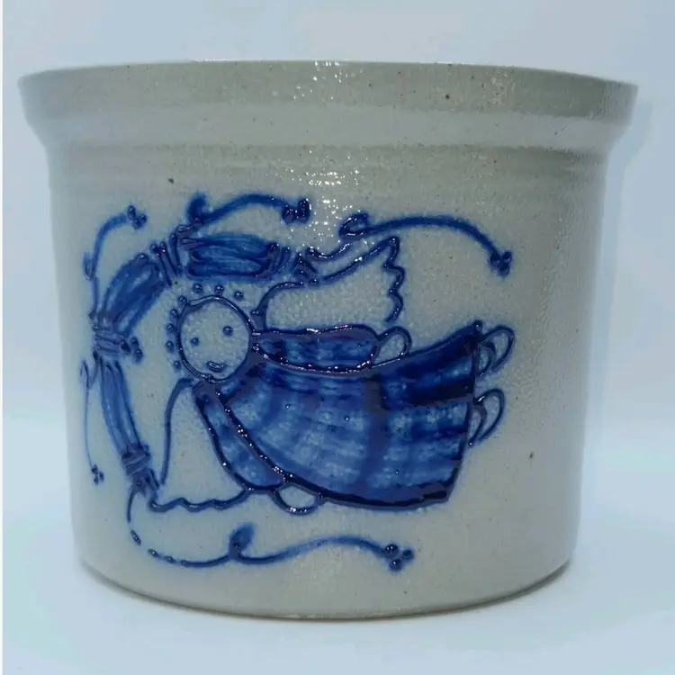 1999 DAVID ELDRETH Salt Glaze Blue Angel Art Pottery Crock • Nottingham PA 4.5"H Approx 4.5" H X 5.75" W Very good condition. No chips, cracks, or breaks. Areas of minimal wear. See pictures.