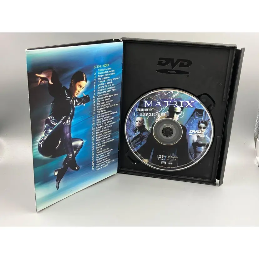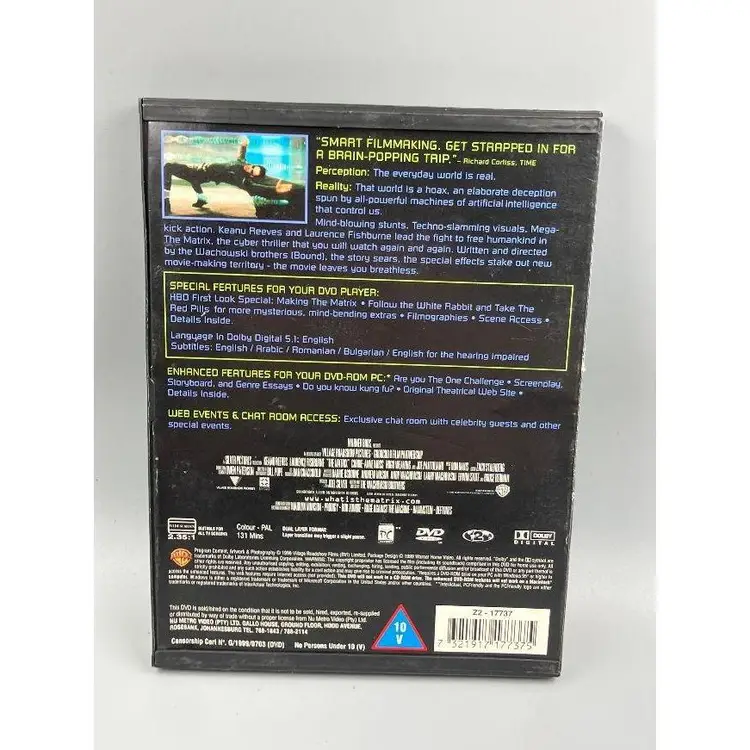 Hello, what we have is a DVD by: Warner Brothers. Year: 1999 Title: The Matrix-Widescreen. Rated: R.