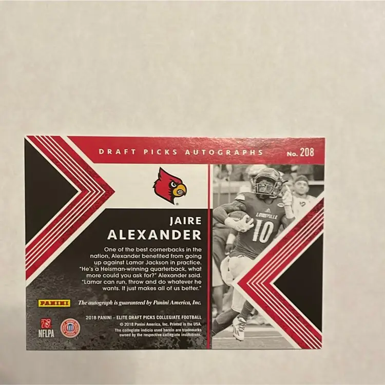2018 Panini Elite Draft Picks Jaire Alexander Rookie Auto #208 Green Bay Packers