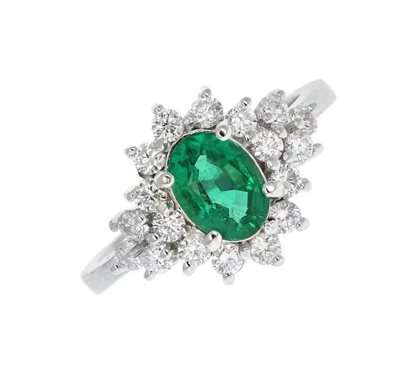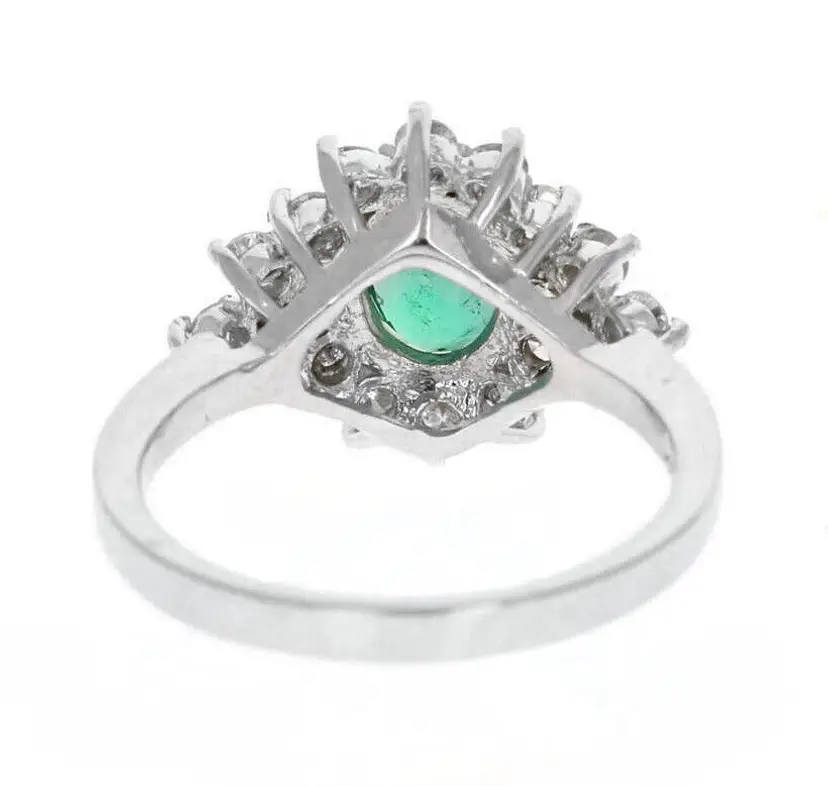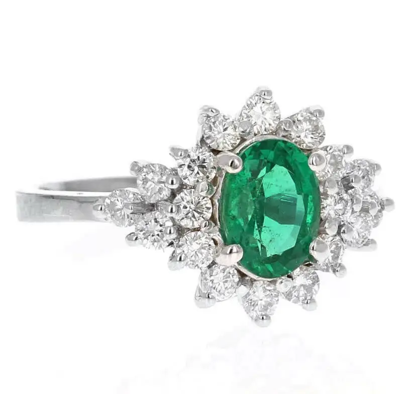 Ring Size: 7 Brand: Unbranded Main Stone Treatment: oiling Type: Ring Main Stone Creation: Natural Metal Purity: 14k Main Stone Shape: Oval Sizable: Yes Main Stone Color: Green Total Carat Weight (TCW): 2.25 Metal: White Gold Main Stone: Emerald
