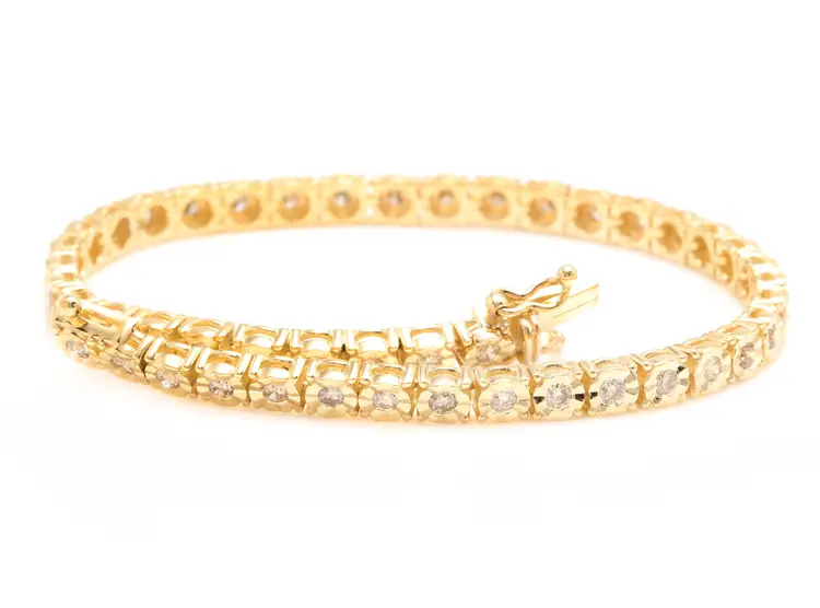 Country/Region of Manufacture: United States Style: Tennis Length (inches): 7 Clarity: SI1-SI2 Main Stone Treatment: Not Enhanced Diamond Color: J-K Metal Purity: 14k solid gold Fancy Diamond Color: Yellow Main Stone Creation: Natural Cut: Excellent Metal: Yellow Gold Total Carat Weight (TCW): 2.60 Type: Bracelet Main Stone: Diamond Brand: Unbranded