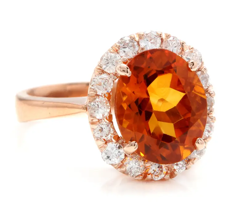 Ring Size: 6 Brand: Unbranded Main Stone Treatment: Not Enhanced Type: Ring Main Stone Creation: Natural Metal Purity: 14k Main Stone Shape: Oval Sizable: Yes Total Carat Weight (TCW): 2.70 Main Stone Color: Orange Metal: Rose Gold Main Stone: Madeira Citrine