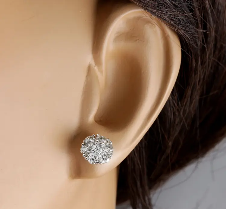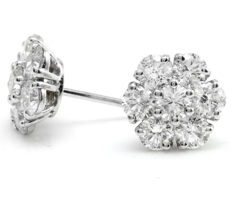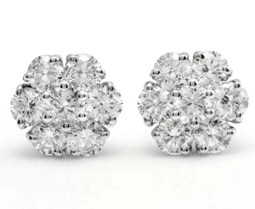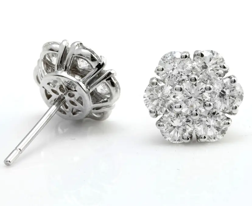 Metal: White Gold Metal Purity: 14k solid gold Main Stone Shape: Round Diamond Color: F-G Clarity: SI1-SI2 Cut: Excellent Main Stone Treatment: Not Enhanced Style: Stud Total Carat Weight (TCW): 2.75 Type: Earrings Main Stone: Diamond Brand: Unbranded