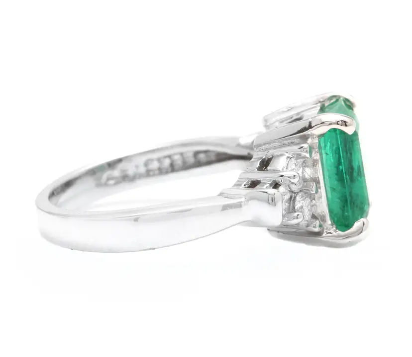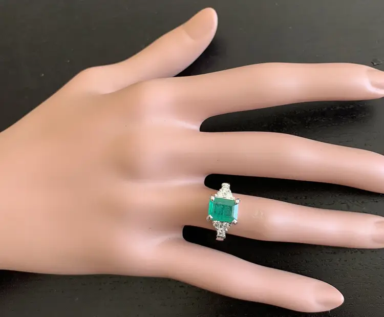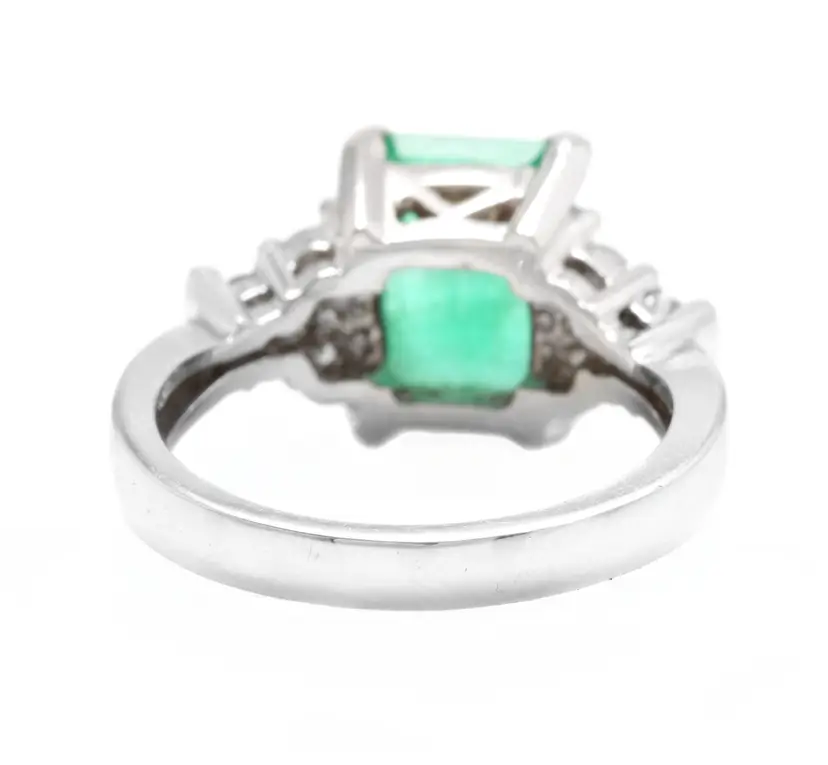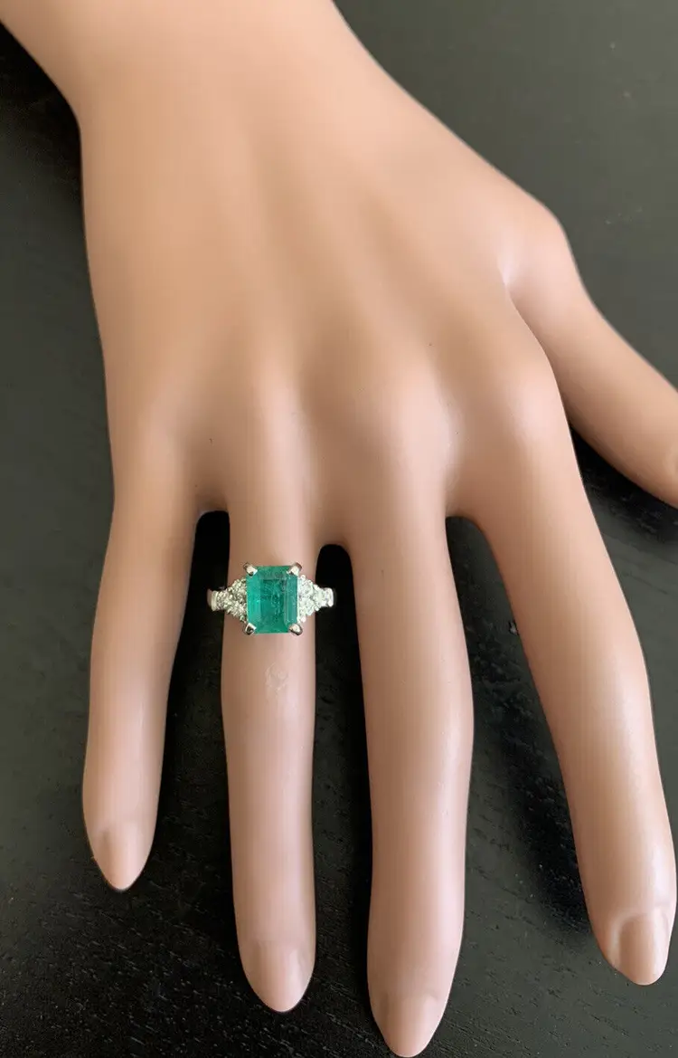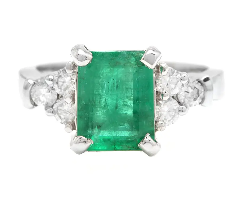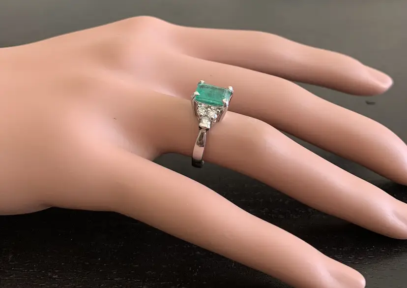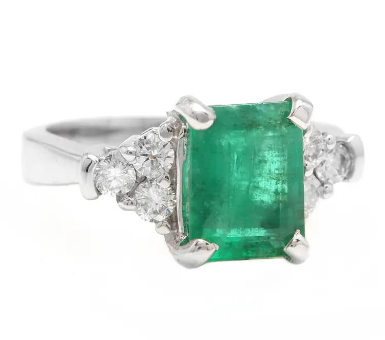 Main Stone Creation: Natural Metal Purity: 14k solid gold Style: With Diamonds & Gemstones Metal: White Gold Secondary Stone: Diamond Main Stone: Emerald Total Carat Weight (TCW): 2.80 Sizable: Yes Main Stone Treatment: oiling Main Stone Shape: Emerald Ring Size: 6 Main Stone Color: Green Brand: Unbranded Type: Ring