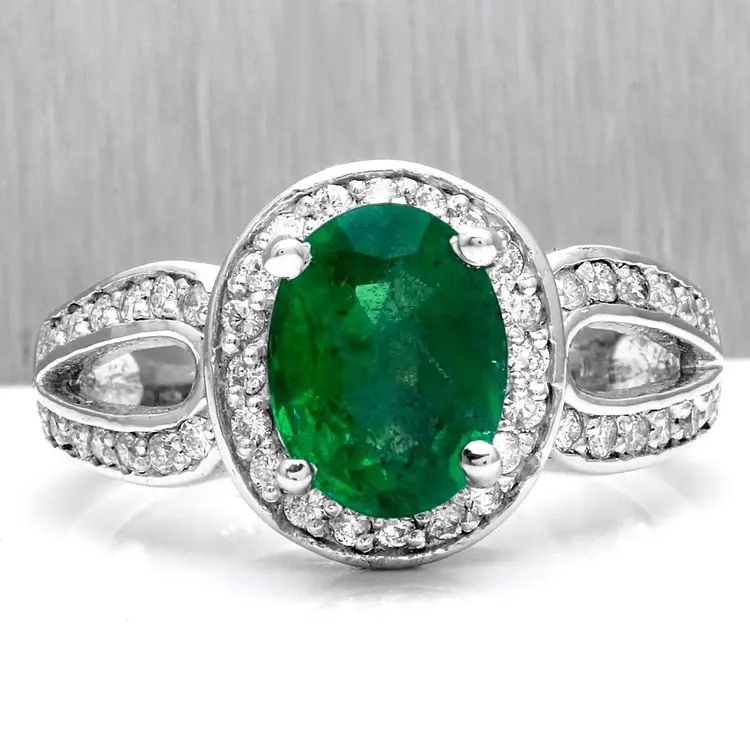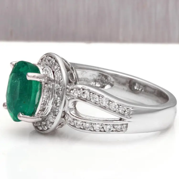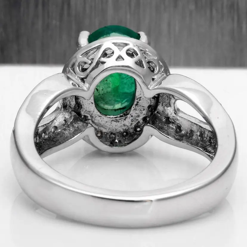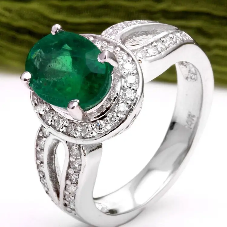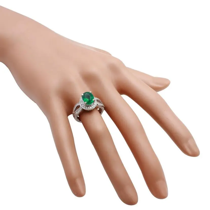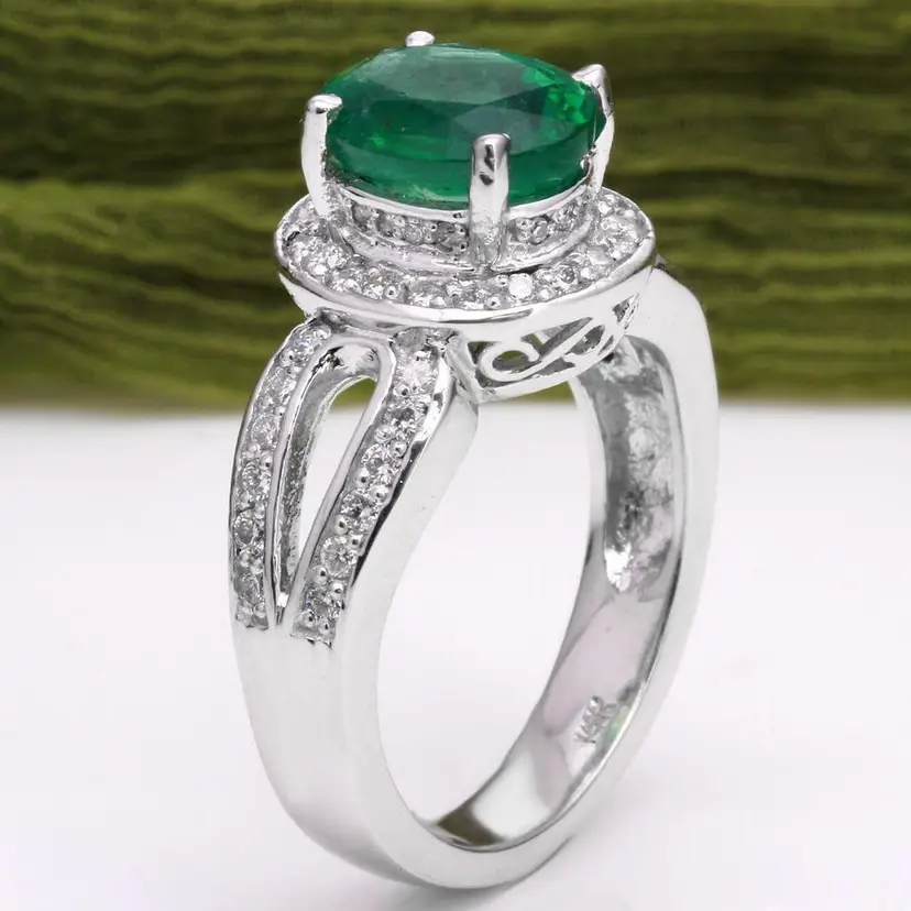Base Metal: 14k Main Stone Color: Green Main Stone Treatment: Heating Metal Purity: 14k solid gold Main Stone: Emerald Sizable: Yes Main Stone Creation: Natural Metal: White Gold Brand: Unbranded Ring Size: 6.5 Total Carat Weight (TCW): 2.90 Main Stone Shape: Oval Type: Ring