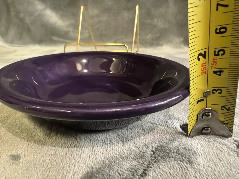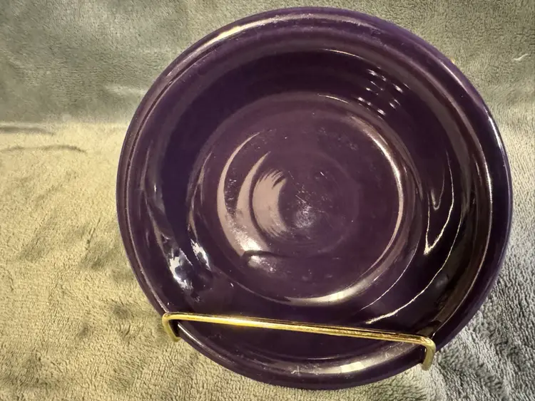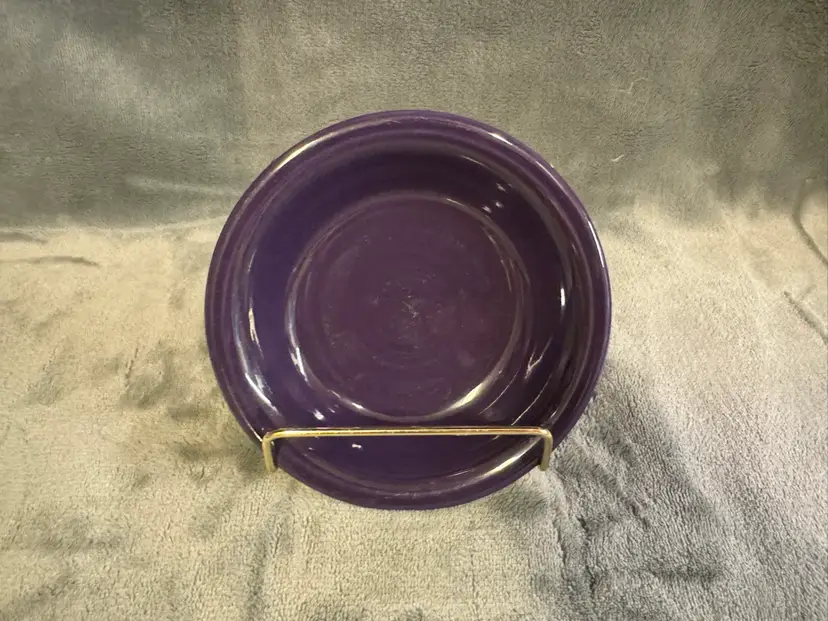 2 available. Please see my other listings for more matching items. The product is a small ramekin condiment bowl in a vibrant mulberry plum purple color, made by the American brand Fiestaware. These contemporary style bowls are round in shape with a glossy finish, perfect for all occasions. Crafted from ceramic and dishwasher safe, they are a part of the Fiesta product line and were produced using pottery techniques in the United States. With a diameter of 5.25 inches and a depth of 1.25 inches, these original pieces add a pop of color to any table setting. Excellent condition. No chips, cracks, or crazing. Just a few utensil marks consistent with very limited use. See photos.