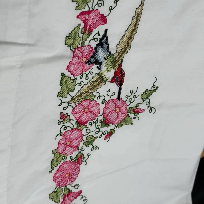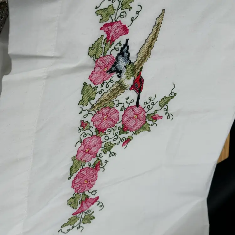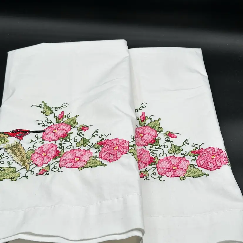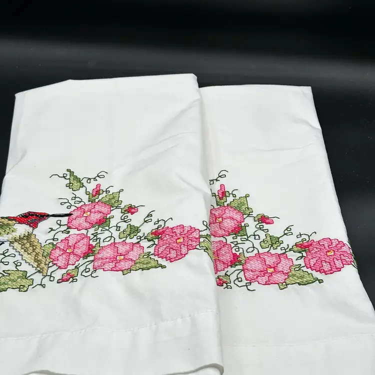 2 Bucilla 65192 Hummingbird Floral Standard Pillowcases Stamped Cross Stitch Pillowcases