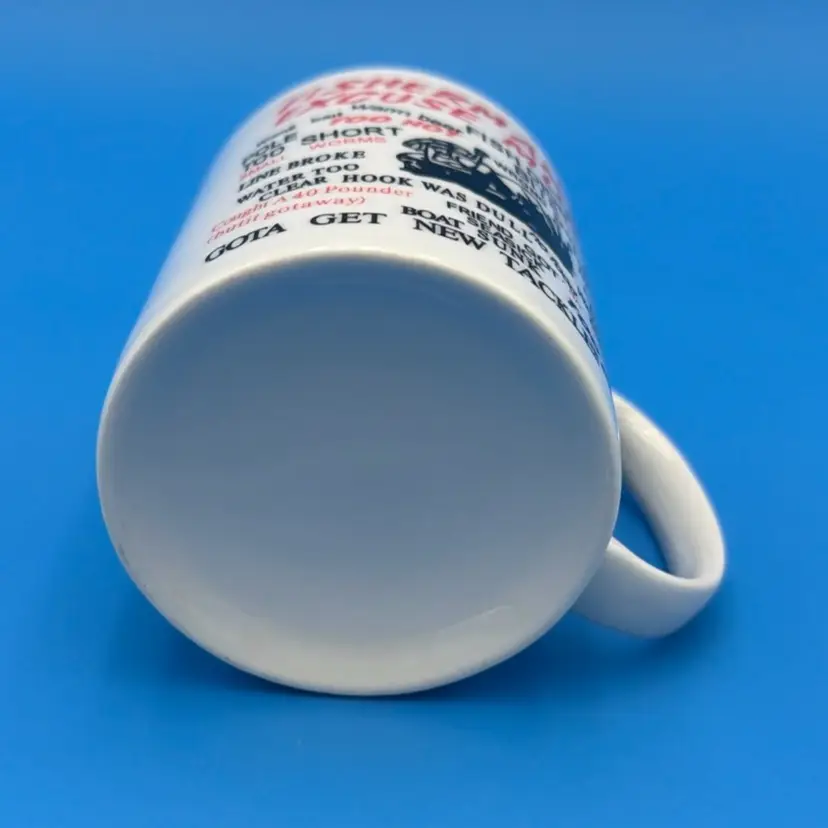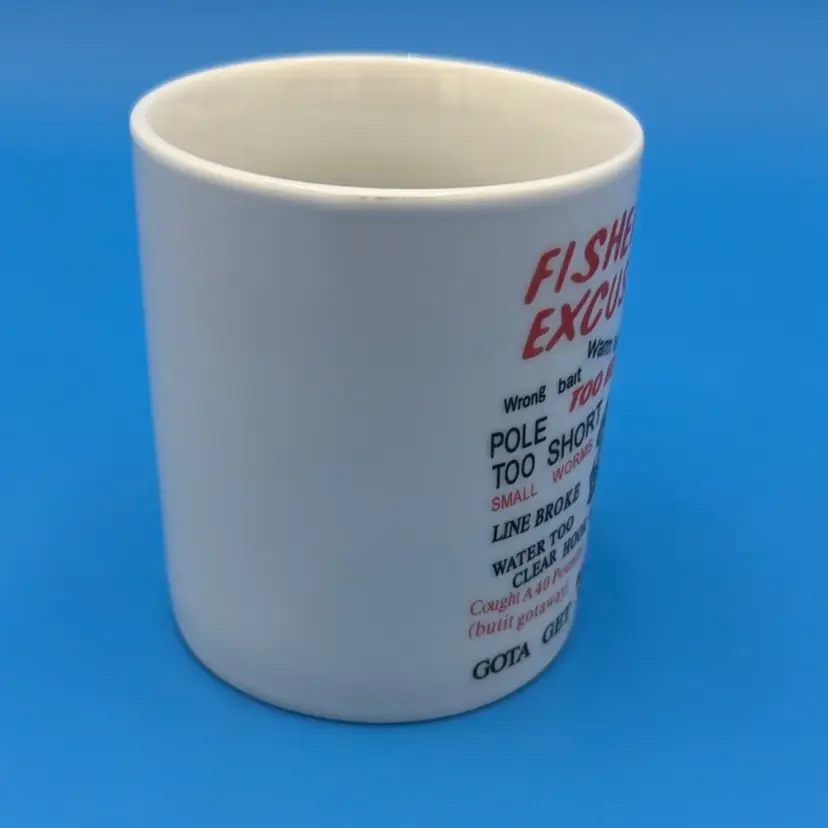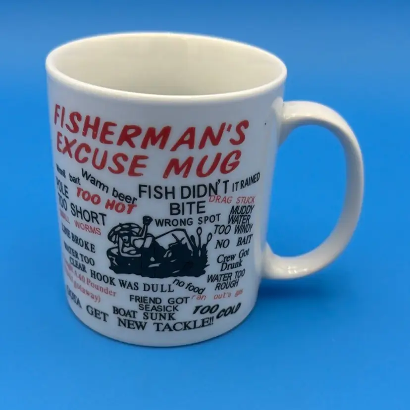 This mug is in good condition with humorous fishing excuses. Perfect for any fishing enthusiast. Please check the pictures for details.