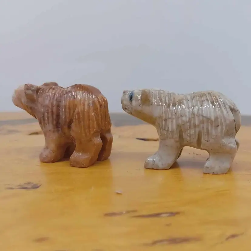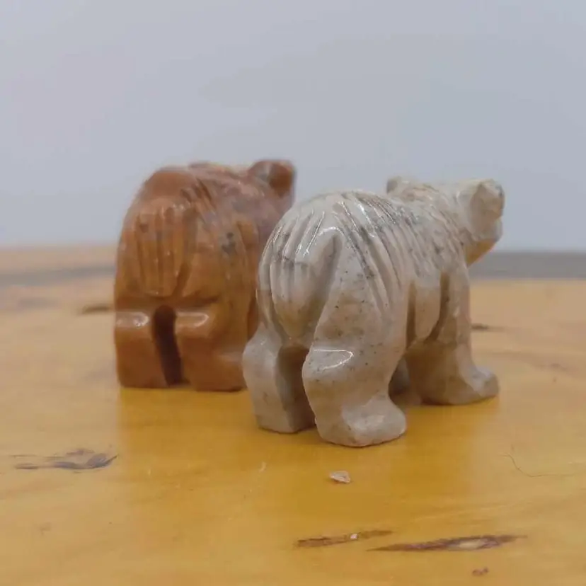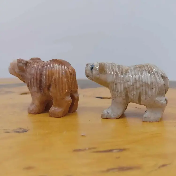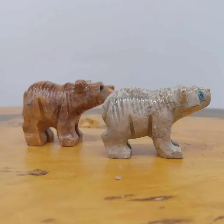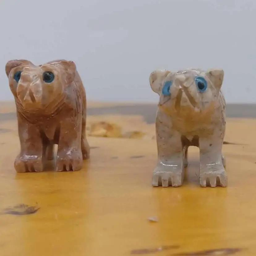 Here are 2 cute bears. They are carved stone, 1 is a terracotta color and the other is tan. They have blue eyes and each are 1 inch tall.