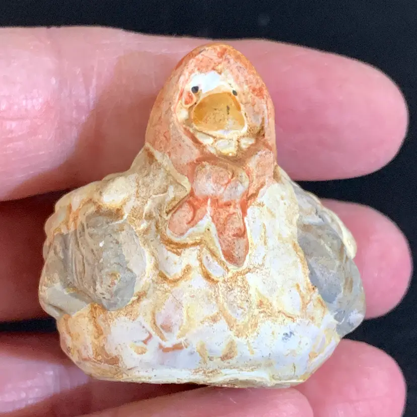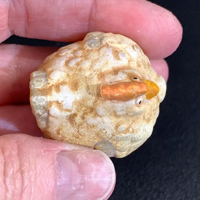 These are so cute! No chips or cracks. The one with the hat measures 1 1/2 inches wide and 1 1/2 inches tall. The other one measures 1 1/4 inches wide and 1 1/4 inches tall. Weighs 1 ounces. If the actual postage ends up being less than what you paid, you will be refunded for anything over one dollar.