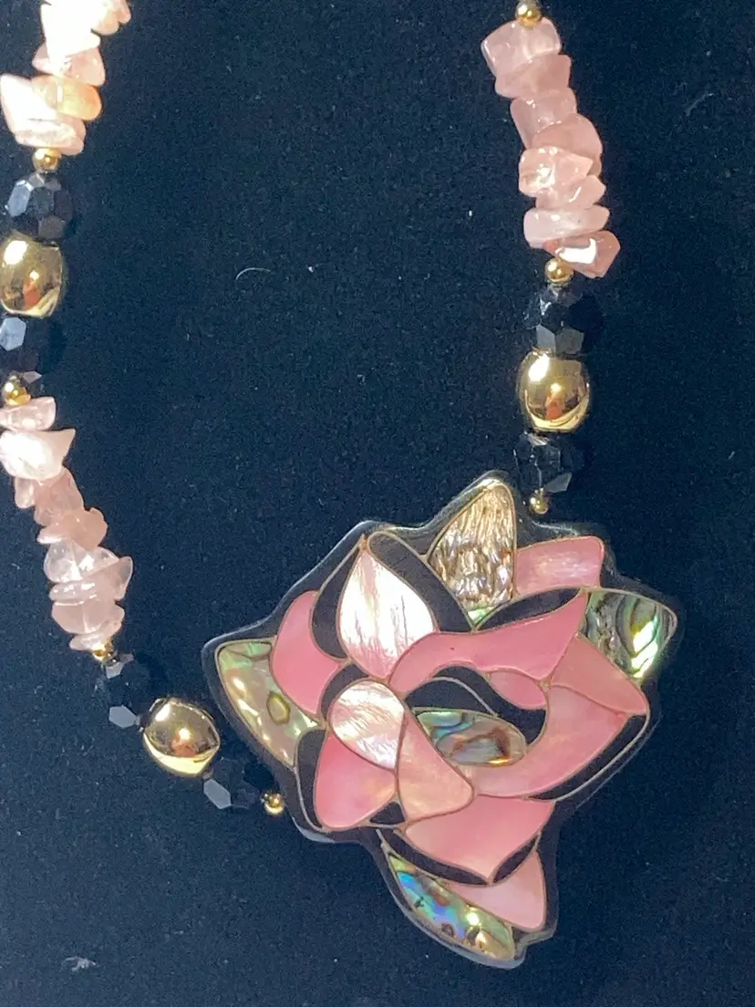 2 Day Sale! ๐๐๐ Combined Shipping On! Offers accepted too! Check out my profile page for all available items! Give me a Follow and I'll Follow you back! ๐ค๐๐ค Rose Quartz And Abalone Inlay! Beautiful Flower Pendant! 18โ Long! New to District? Enter code Michel42 into your wallet prior to your first purchase and save $5 off of $10 or more purchase! Thank you for taking a look at my items!