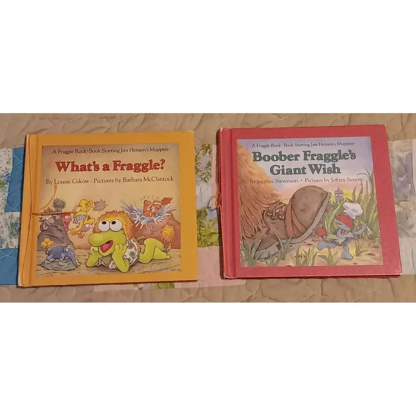 Pair of Fraggle Rock Hardcover 1984 Weekly Reader Books by The Jim Henson Company. Includes Whats a Fraggle? and Boober Fraggle's Giant Wish. Each book has some wear from general age and use. Both are in good readable shape. Both still have original string.