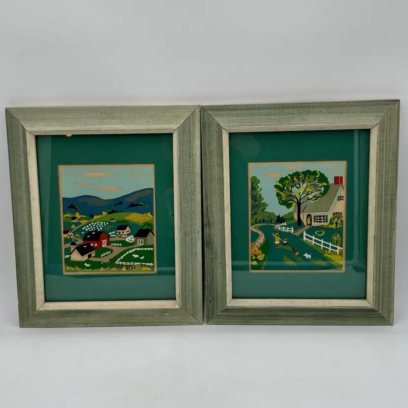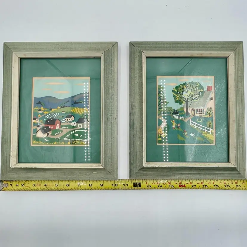 10.25" x 12.25" each. An identical, unframed farm serigraph (to the one on the left), was appraised by Dr. Lori on one of her lives for $75. This listing is for the set.
