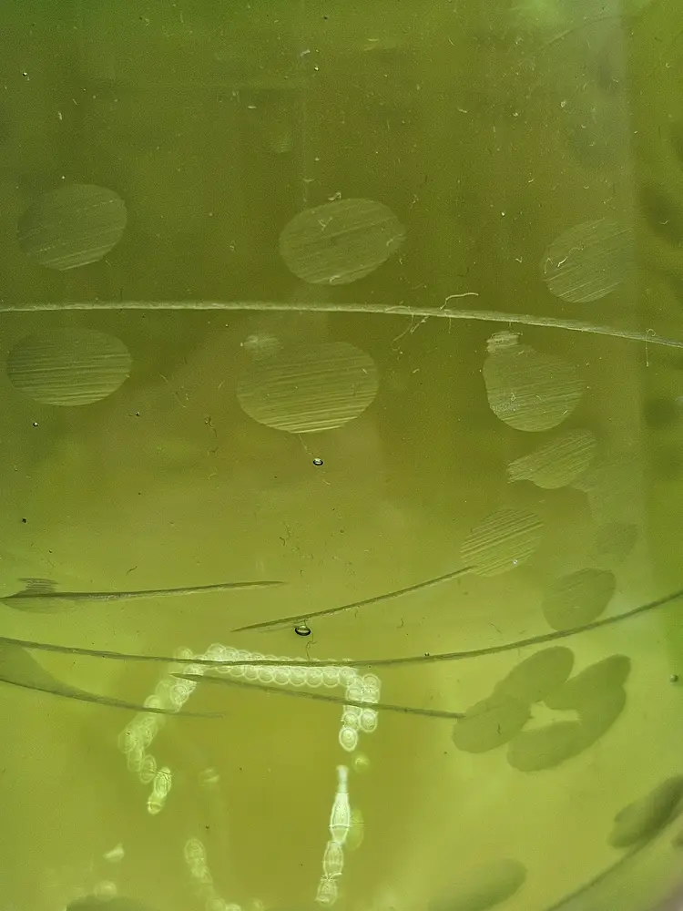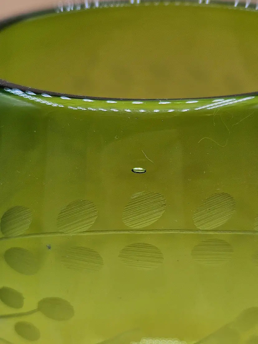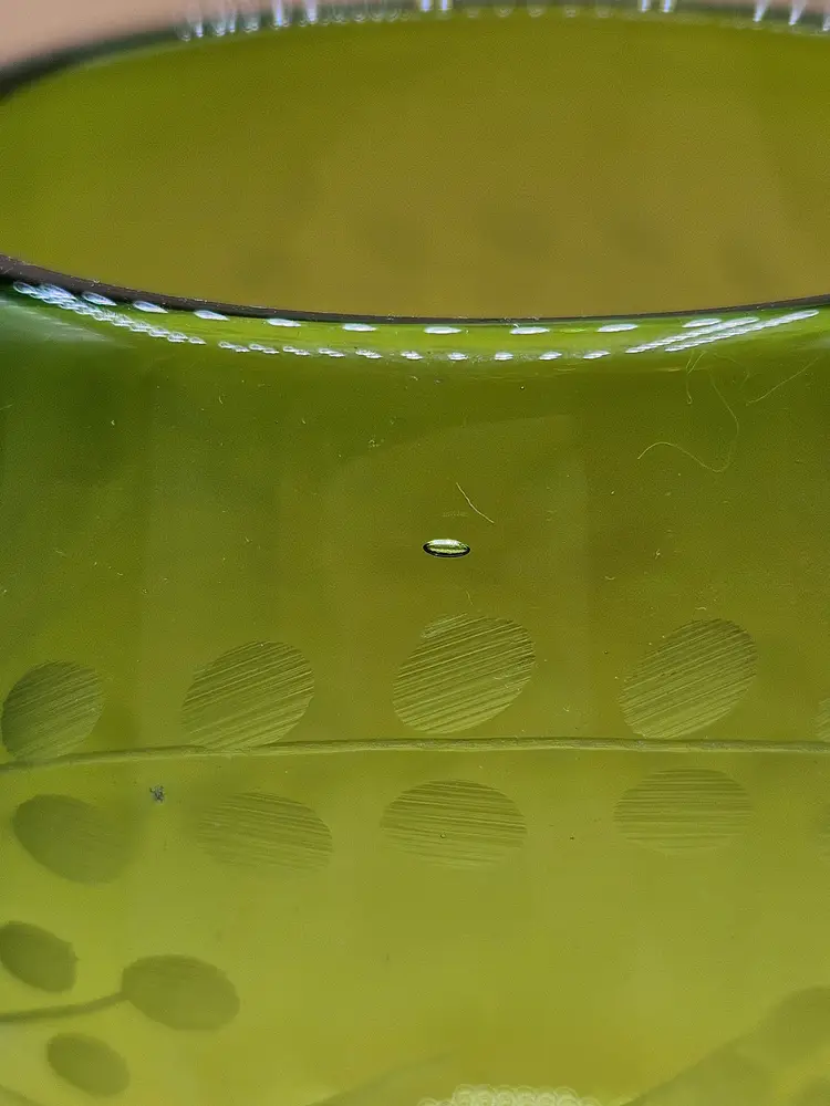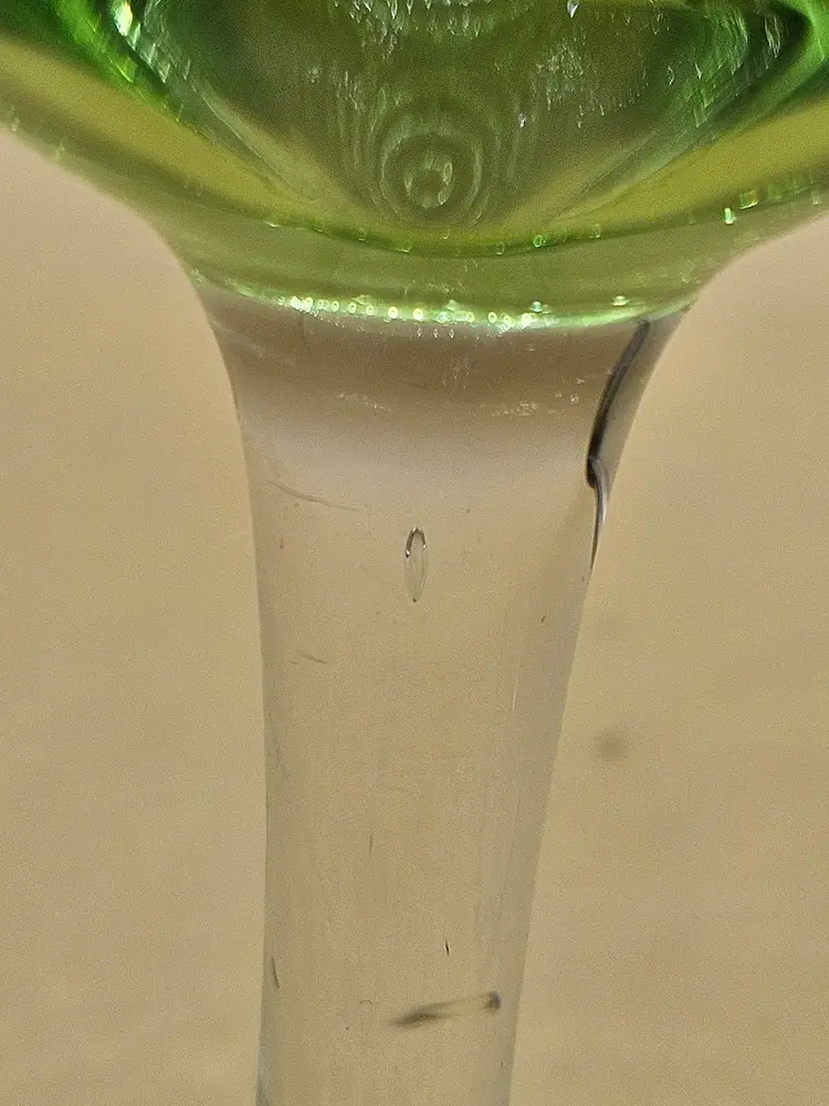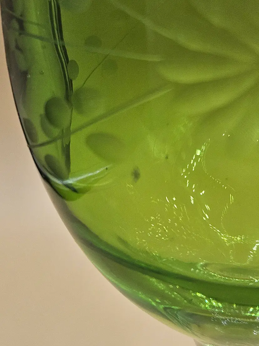 Tiny fleabite chip on the smaller one. Bubble inclusions SEE PICTURES. Glasses are 8 3/8" & 8 7/8".