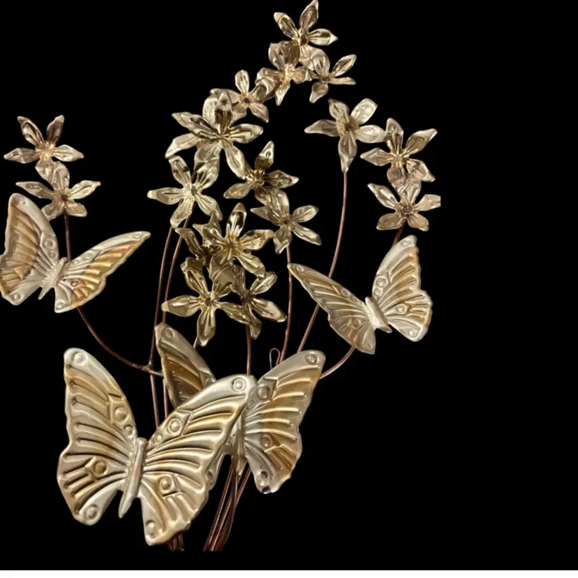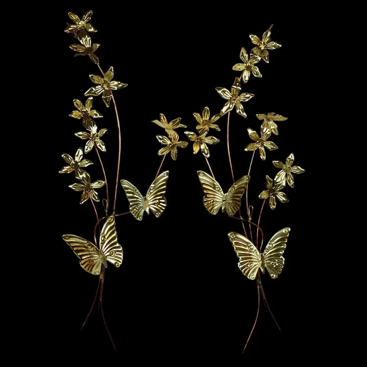 Approx. 24” (2ft.) long each Set of 2 HOMCO Vintage Home Interiors Mid-Century Modern Brass & Copper Butterfly Flower Wall Hangings Decor Set of 2