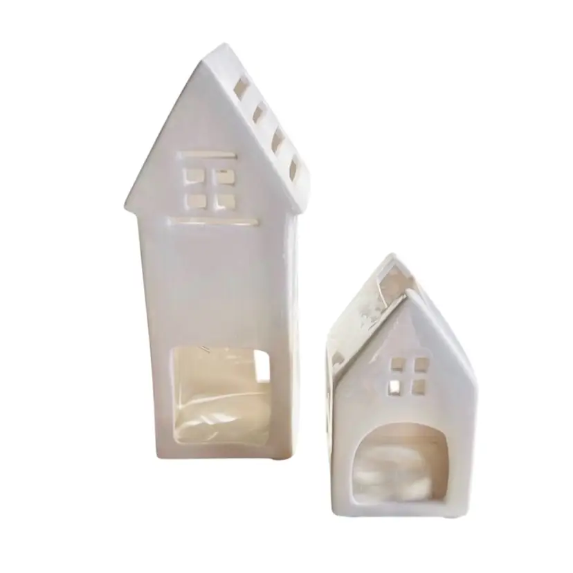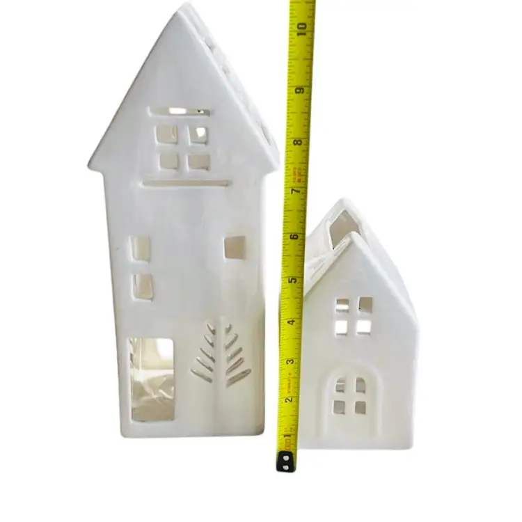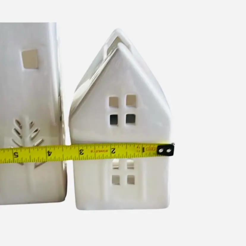 👉Large House 3 1/2 x 10 1/2 x 3 1/2“ 👉Small House 3 1/2 x 6 1/2 x 3 1/2 👉White Porcelain Tea Light Fairy Lamp 👉No chips or cracks sold as shown