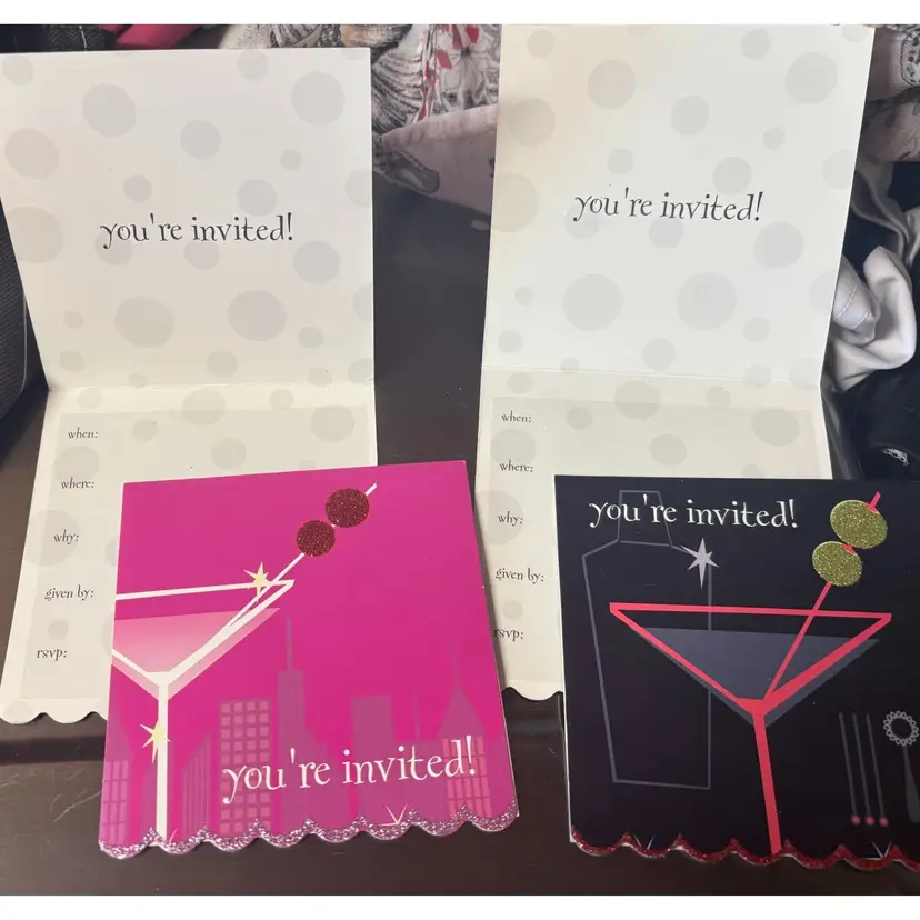 Invite your guests in style with these elegant party invitation cards. Featuring a chic design in pink and black, these cards are perfect for any celebration. Make your event memorable with these stylish invites.
