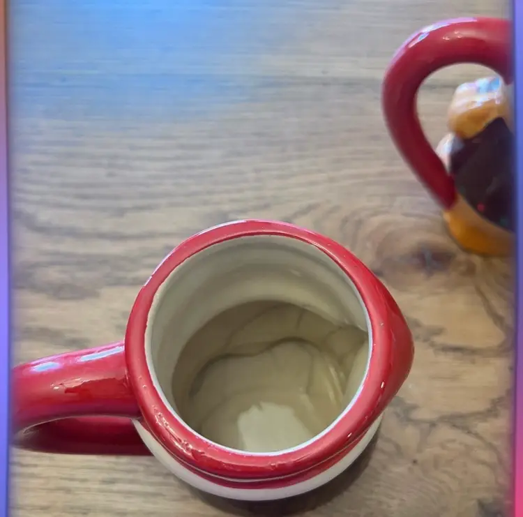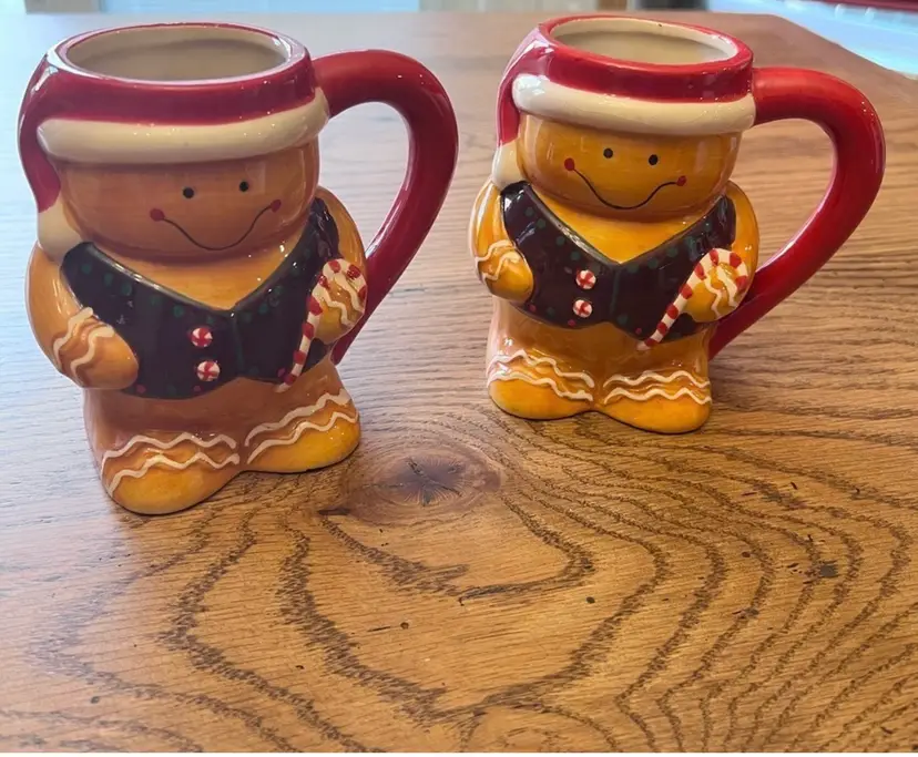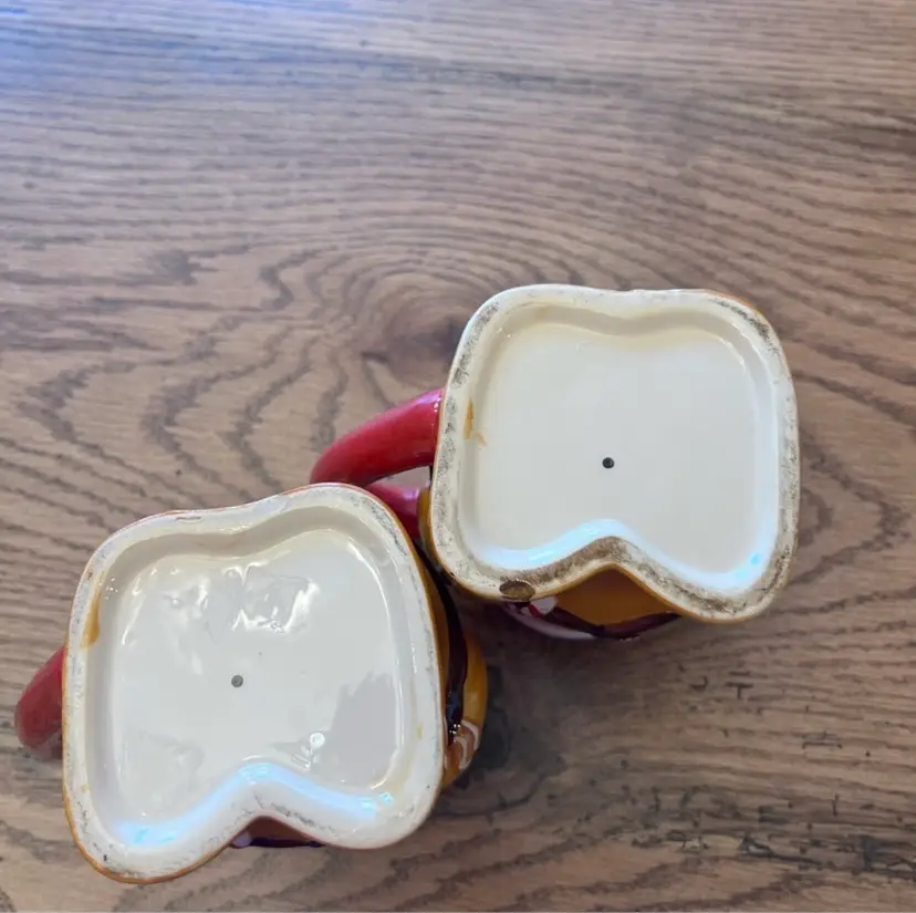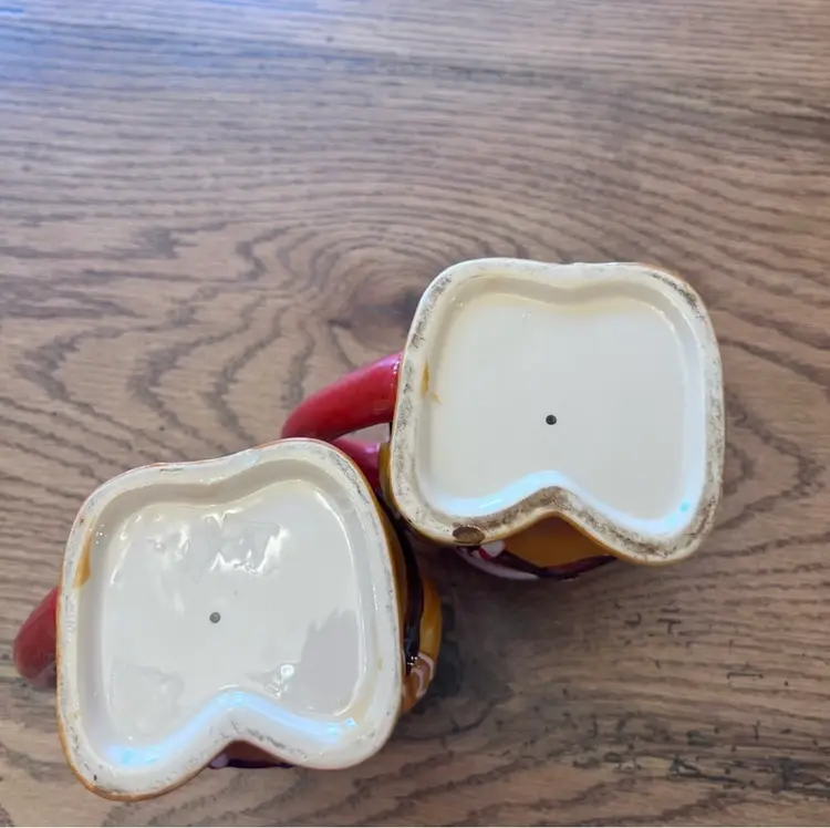 Two very cute mugs. Excelent condition! Measurements: 5" T 4" W. With handle they are 51/2" 3" in diameter. Bottom is 3 1/4" by 3" in diameter.